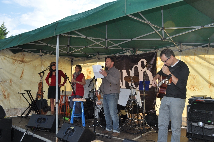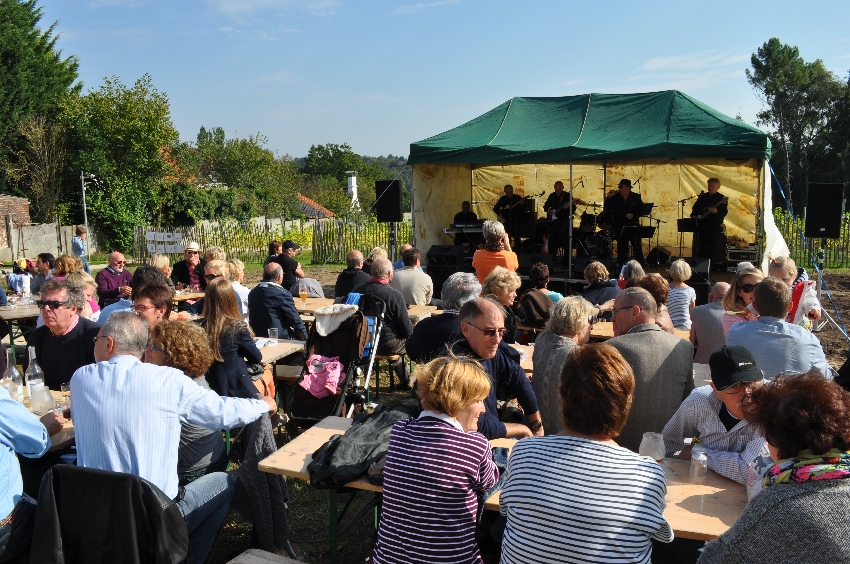 A la fin de l’inauguration, les concerts ont commencé, avec Panorama 08 (ex-Tous au jardin). Ils participent aux Fêtes des Combattants depuis plusieurs éditions: Philippe Gérard, le guitariste, habite à un jet de grappe du vignoble. Le groupe offre quelques titres en guise d’apéritif au concert qu’il donnera le 29 novembre prochain, au Centre culturel de Rixensart.