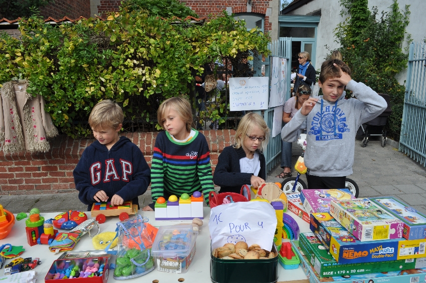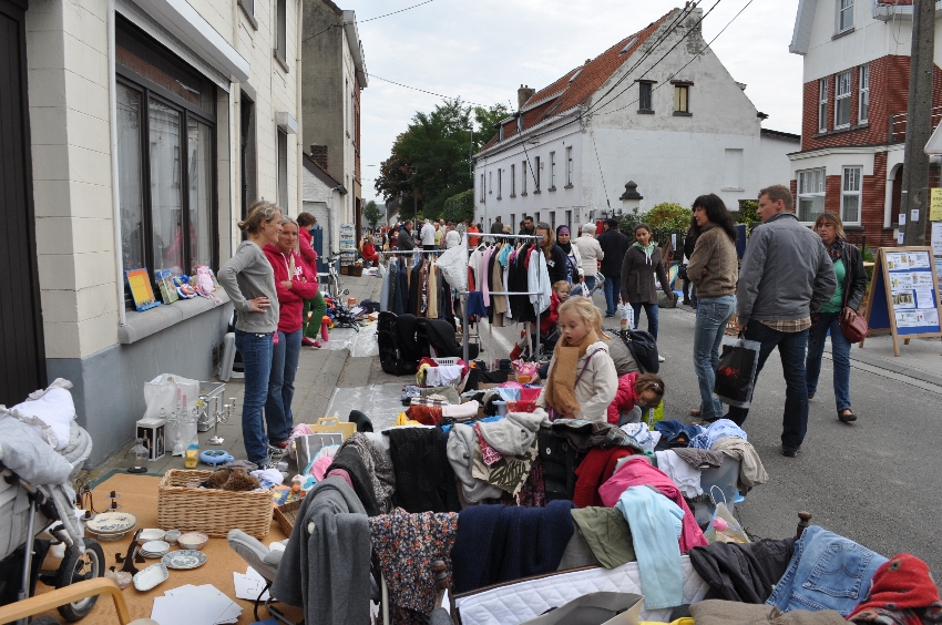 Dans l’avenue, chacun s’installe aussi. Beaucoup ont nettoyé leurs trottoirs, les jours précédents, voire donné un petit coup de pinceau pour offrir un bel écrin à leurs trésors. On vide son grenier une fois tous les deux ans. La brocante offre des paysages hétéroclites où les jeux en plastique côtoient les verres rares, des livres anciens, des vêtements joliment colorés qui habillent les grilles des maisons. Les chineurs sont à la fête.