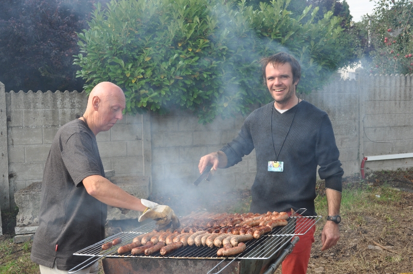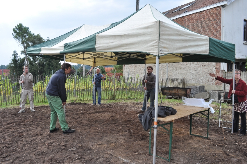 Vers midi, les estomacs crient famine. Le barbecue du vignoble peut ouvrir. Les vignerons de Genval ne sont pas encore à même de proposer la production du domaine du Beau Site; la toute première récolte 2012 n’a pas encore été mise en bouteilles.