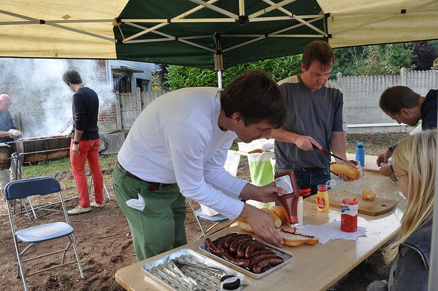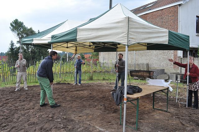 Au Beau Site qui constitue le coeur de la Fête, il faut quelques paires de bras pour sortir les tables et les bancs, dresser les tentes et aménager l’espace autour de la Villa. Il faut que tout soit prêt pour la fin de la matinée. Sur le coup de midi, d’autres bénévoles servent à manger et à boire au bar et au barbecue du vignoble.