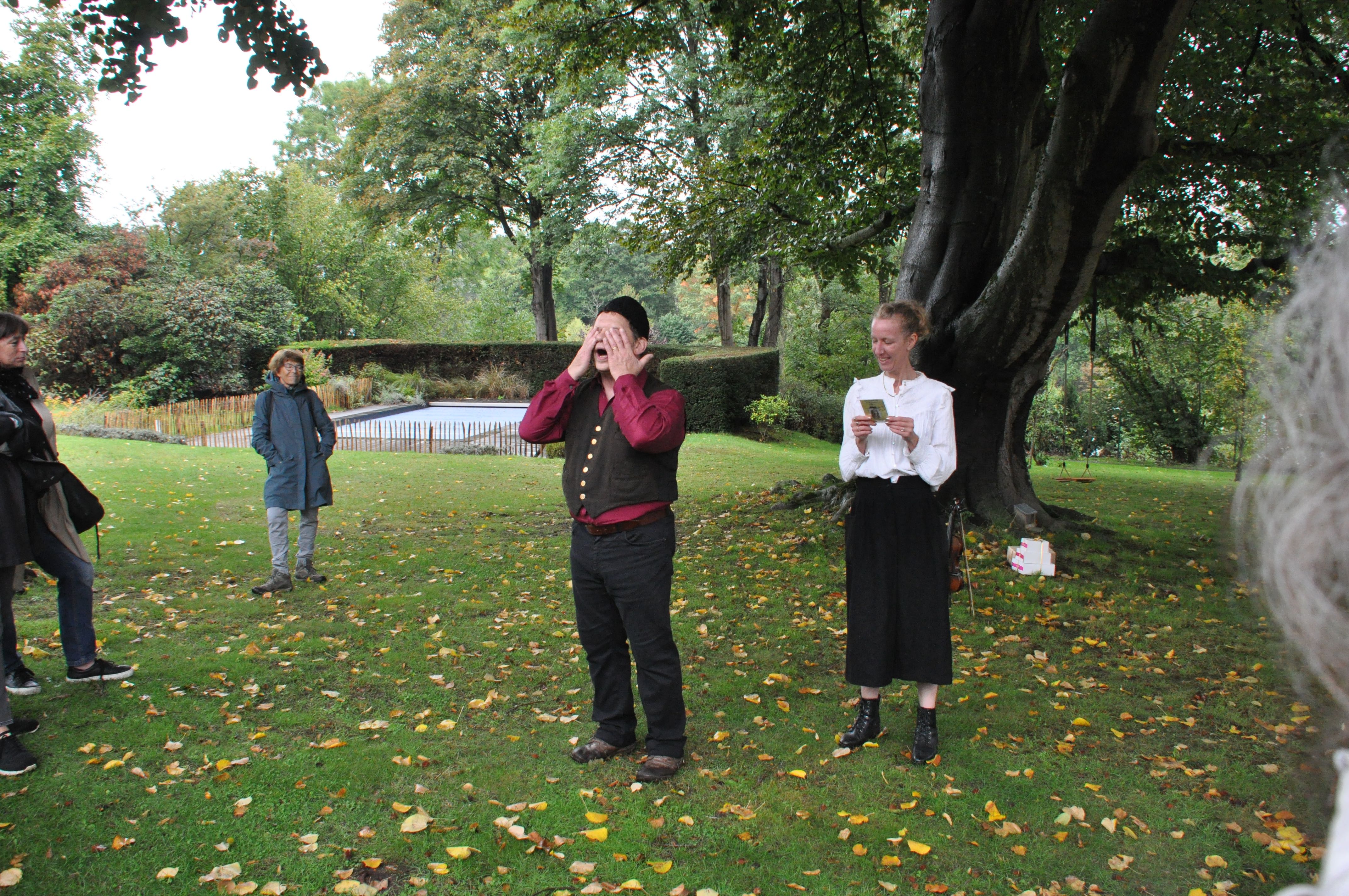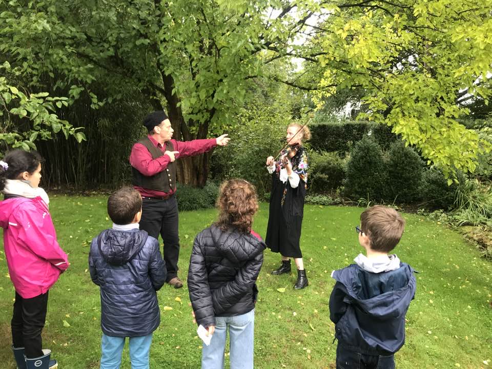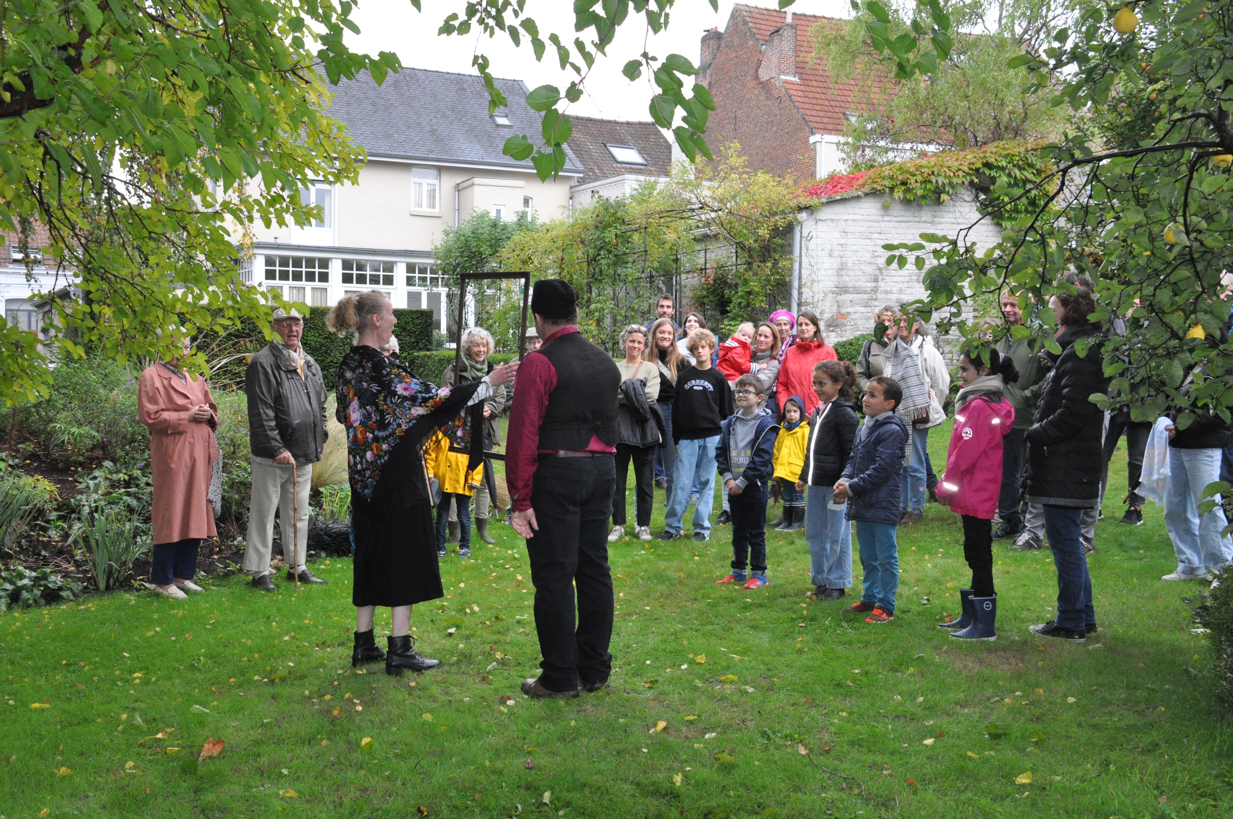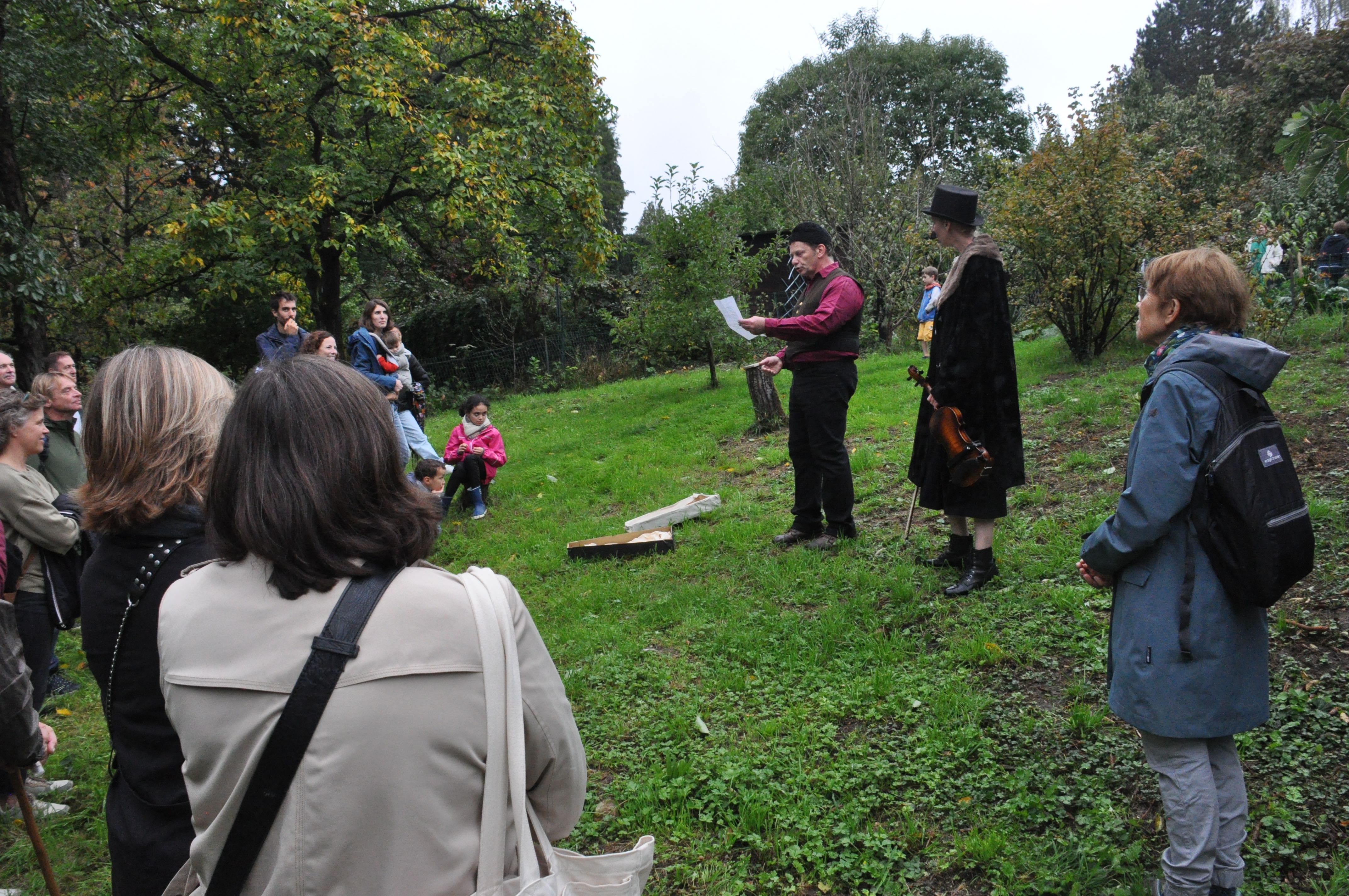 La balade contée de jardin en jardin, avec les Fabelutes, a recueilli un beau succès. Le public a suivi Vincent et Céline interprétant des contes fantastiques, notamment de Tchekhov. Premier arrêt au délicieux English Garden, puis on suit le comédien et la violoniste jusqu’à la Villa Les Vacances dont le jardin descend dans la vallée. Dernière étape à la Villa Medellin, sous un hêtre centenaire et majestueux.