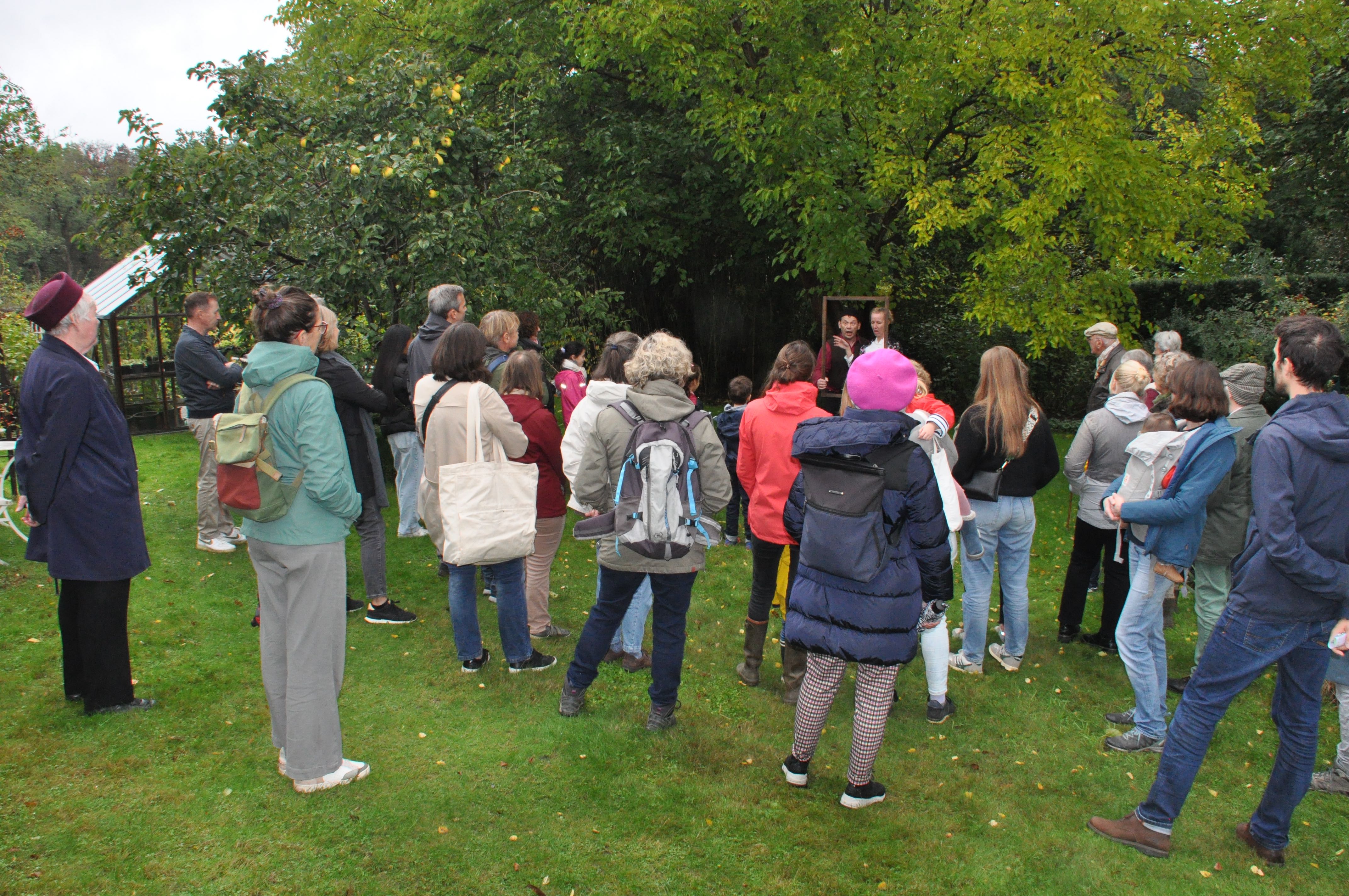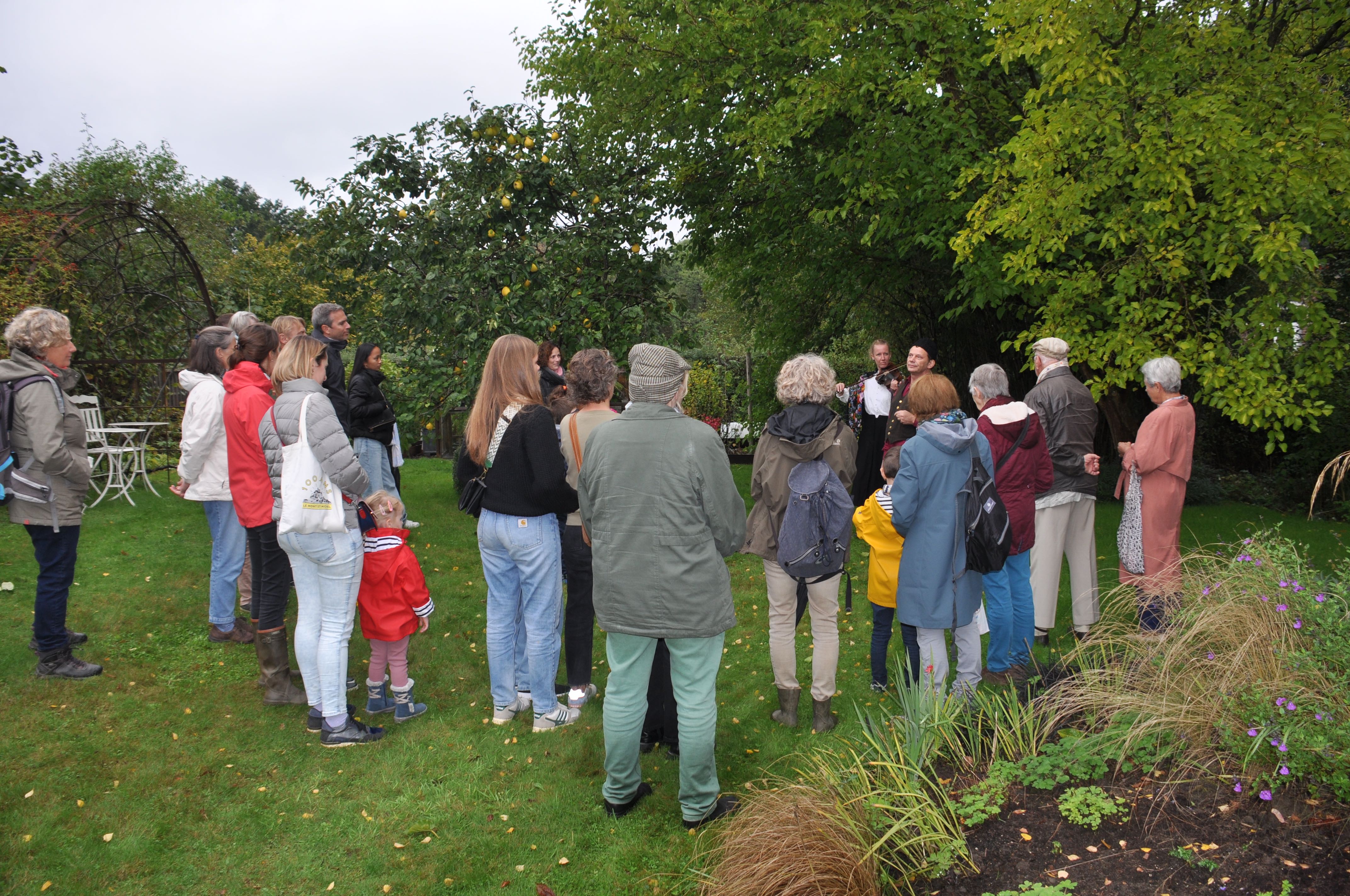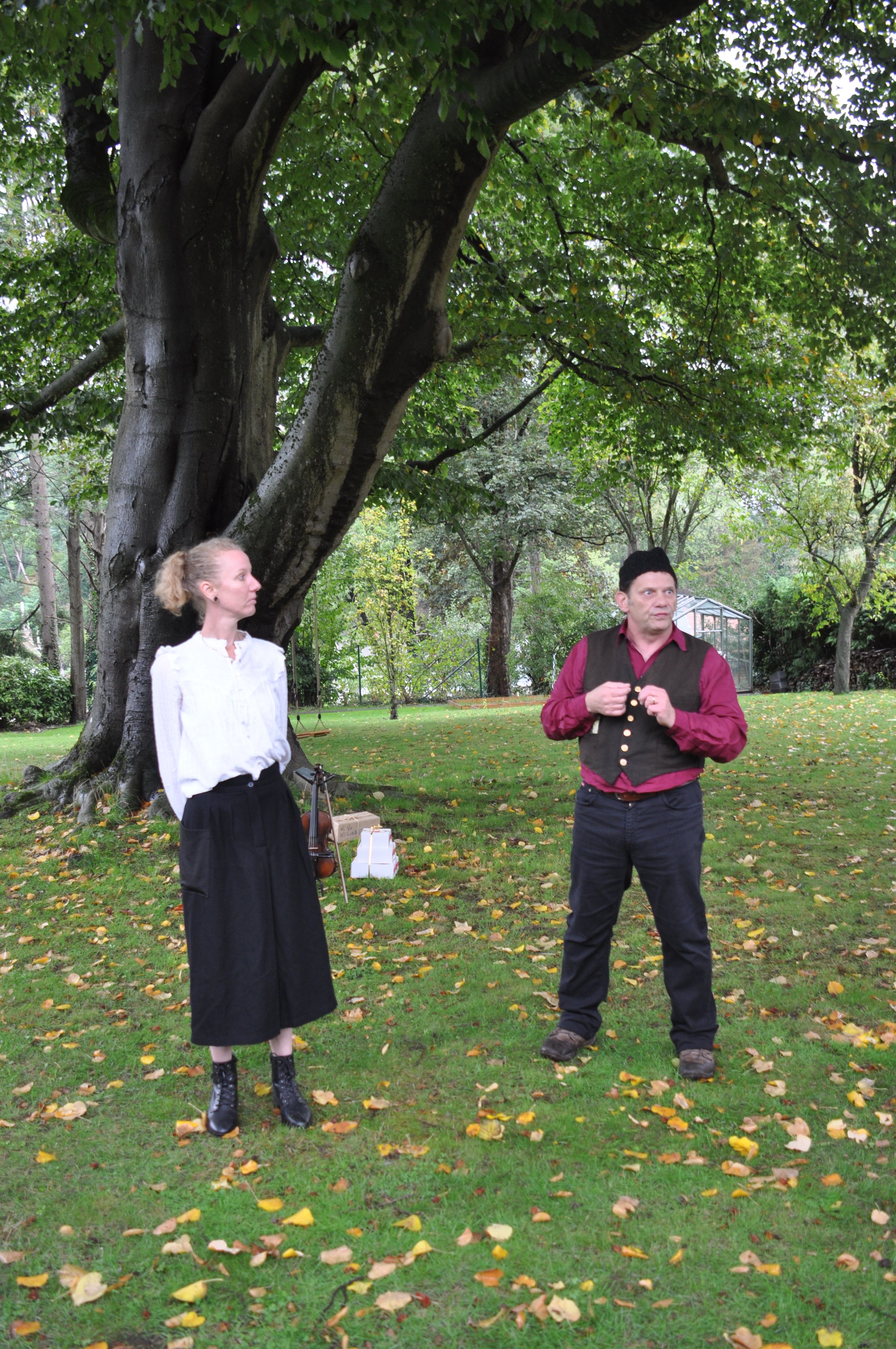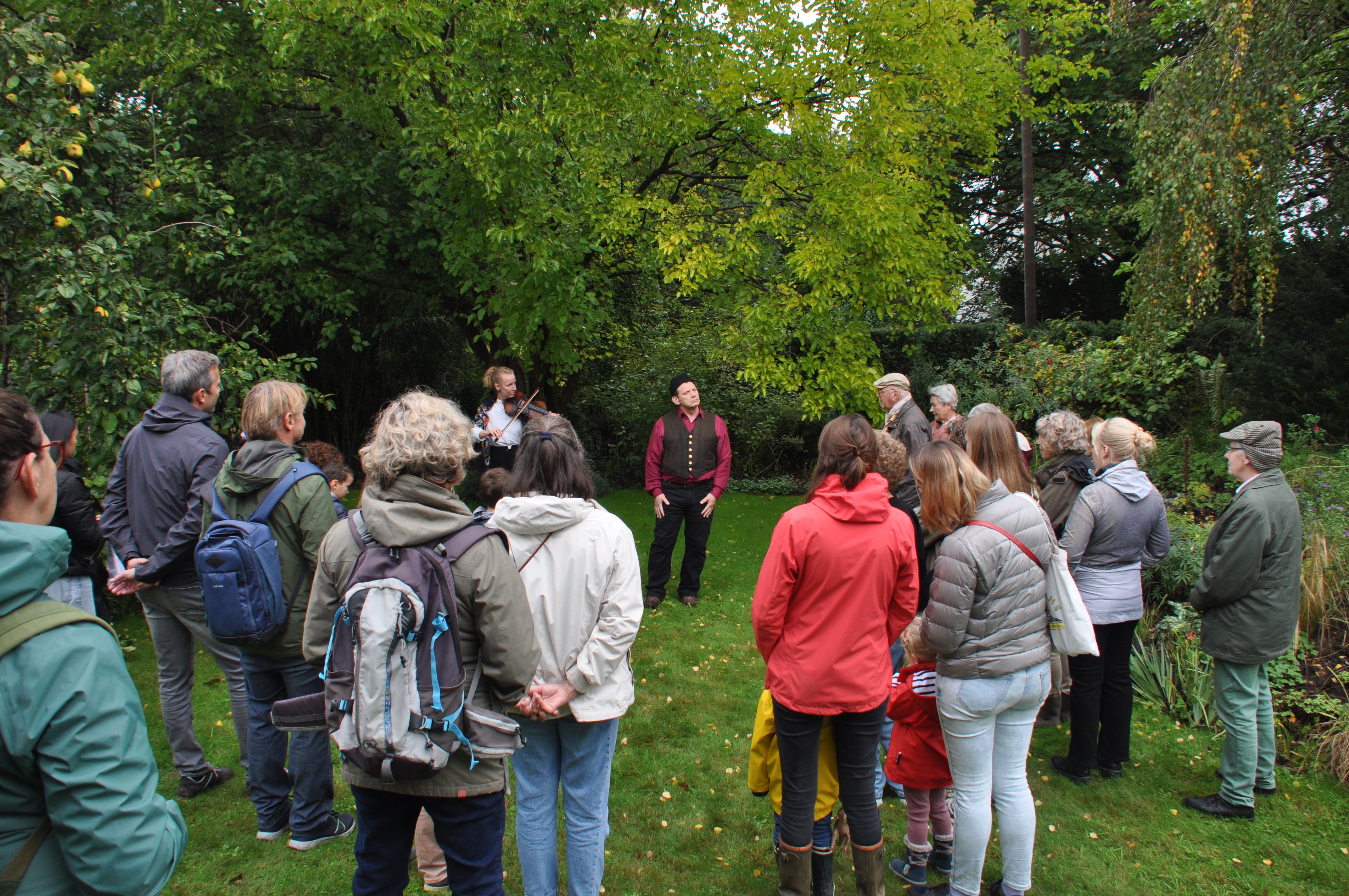 La balade contée de jardin en jardin, avec les Fabelutes, a recueilli un beau succès. Le public a suivi Vincent et Céline interprétant des contes fantastiques, notamment de Tchekhov. Premier arrêt au délicieux English Garden, puis on suit le comédien et la violoniste jusqu’à la Villa Les Vacances dont le jardin descend dans la vallée. Dernière étape à la Villa Medellin, sous un hêtre centenaire et majestueux.