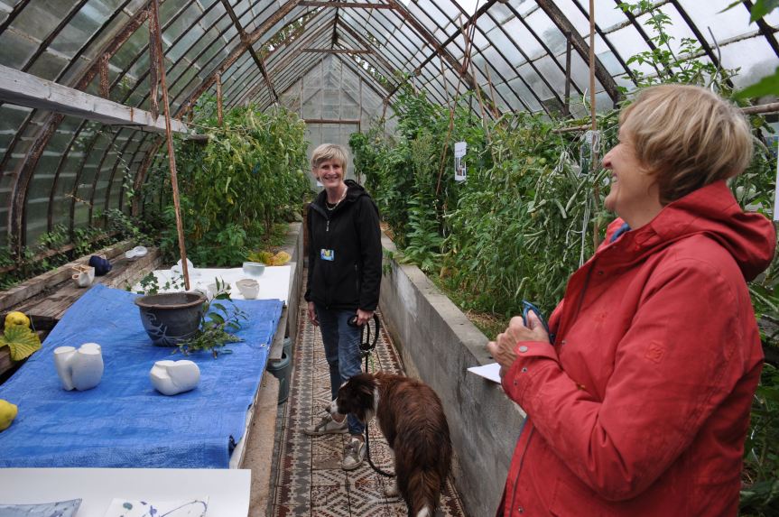 Et dans la serre au bas du vignoble, la céramiste Marie Delforge avait fort joliment mis en évidence des pièces en grès ou en pâte de verre au milieu des tomates et des courgettes. Le vignoble en a profité pour exposer un grand projet de restauration de la serre, véritable morceau de patrimoine à sauver, un lieu rempli de charme.