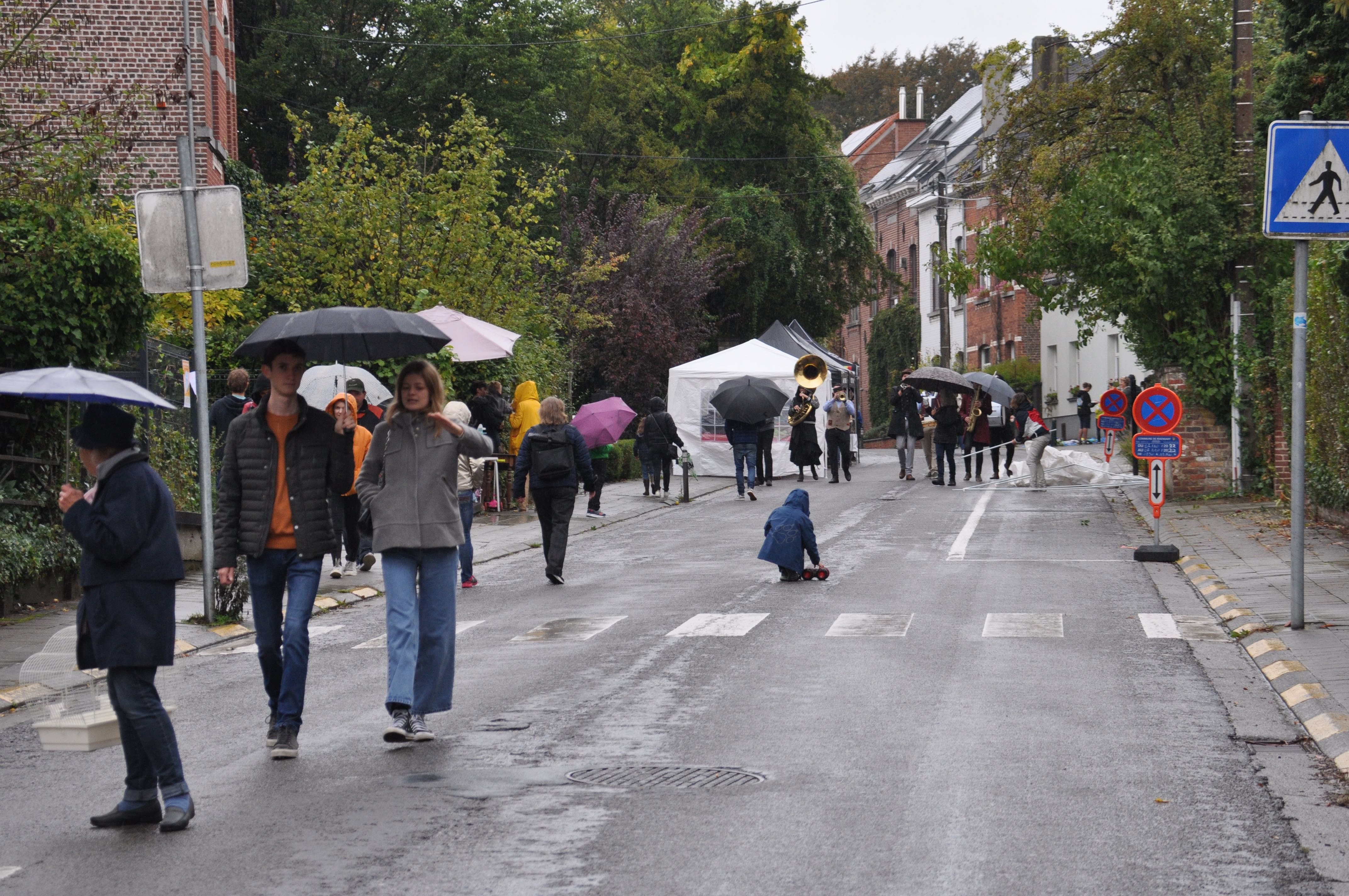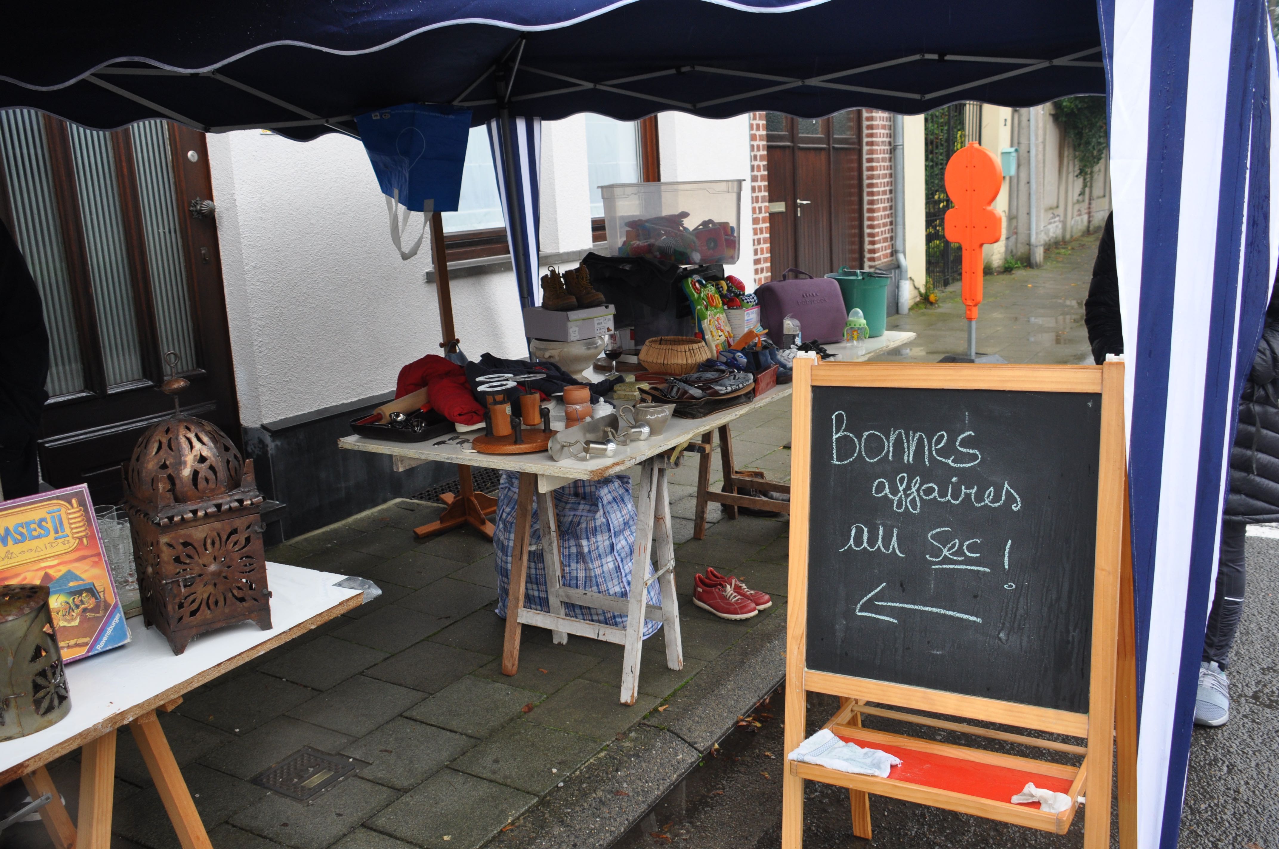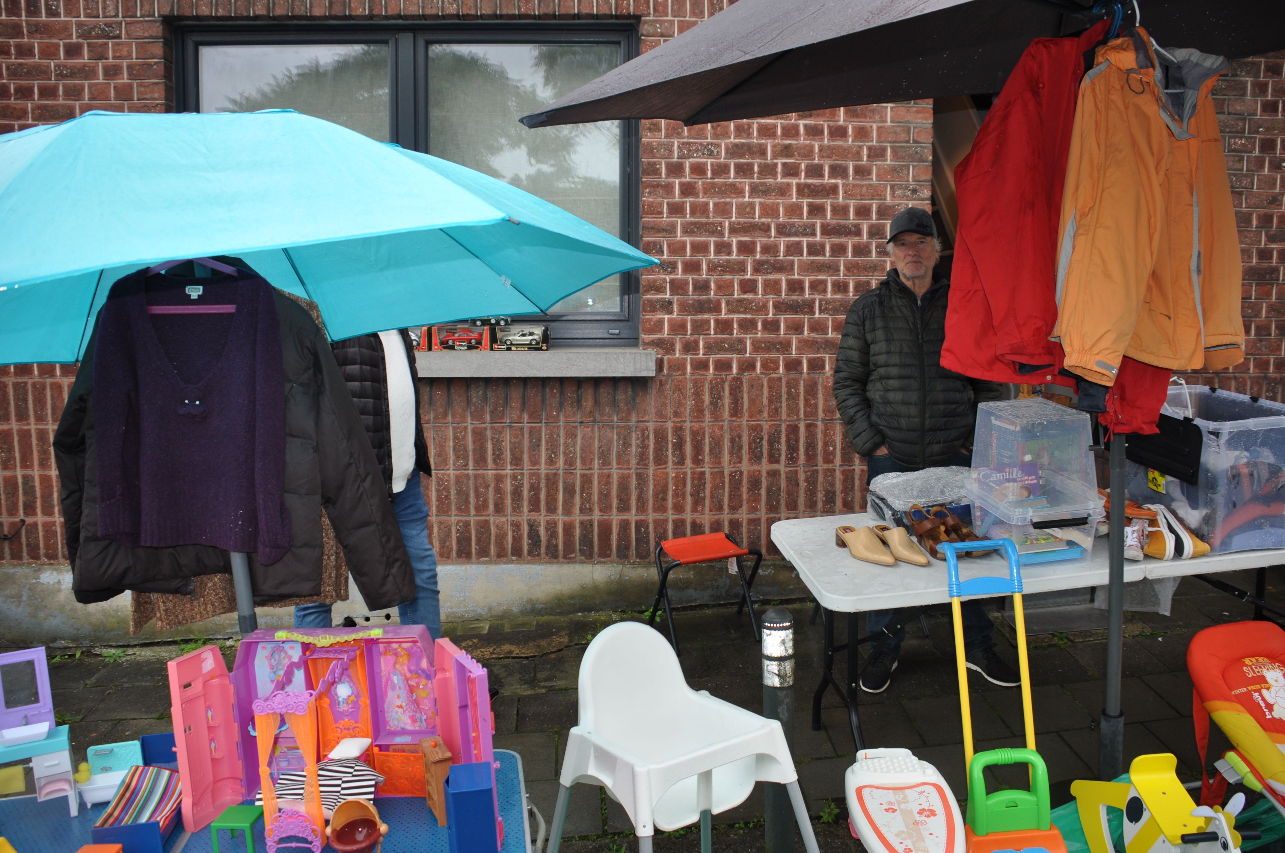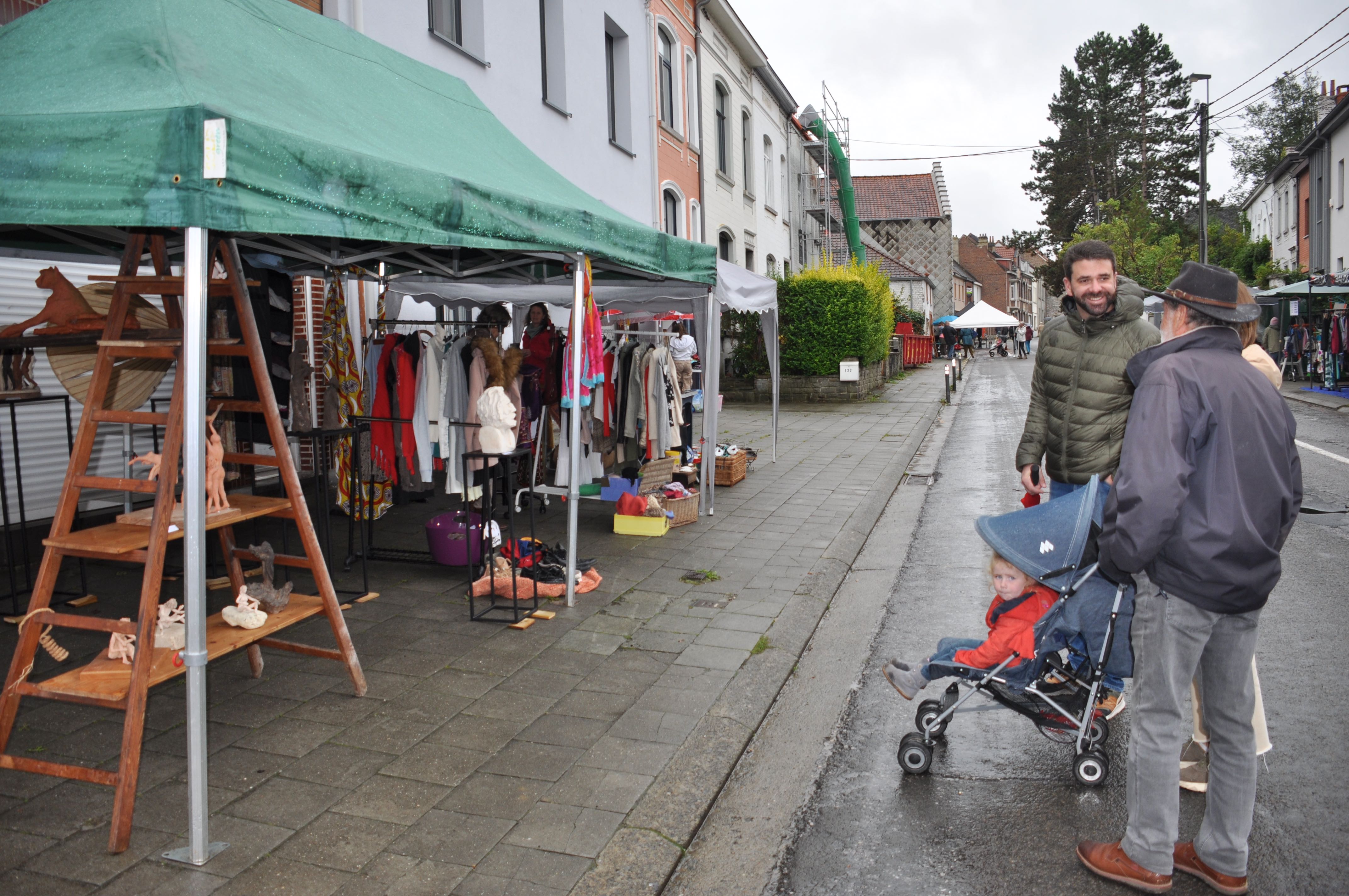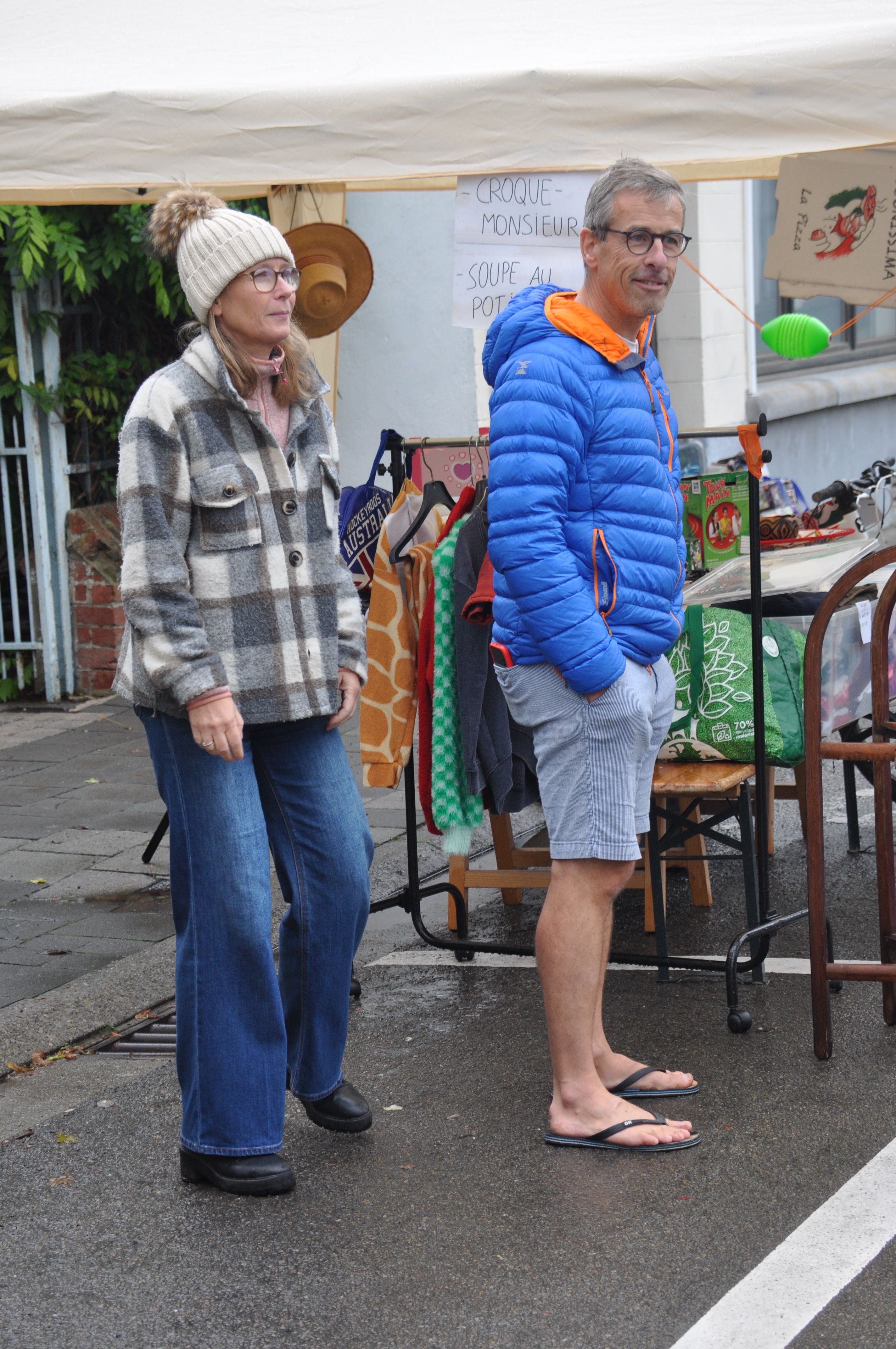 La Fête débute généralement à 9h. Ce dimanche 2 octobre, il fallait beaucoup d’imagination pour voir dans une rue lessivée par la pluie l’amorce de festivités. Les exposants les plus chanceux, ceux qui avaient une tente, ont bel et bien sorti leurs affaires pour la brocante. Les badauds étaient peu nombreux, capuchons et parapluies de rigueur.