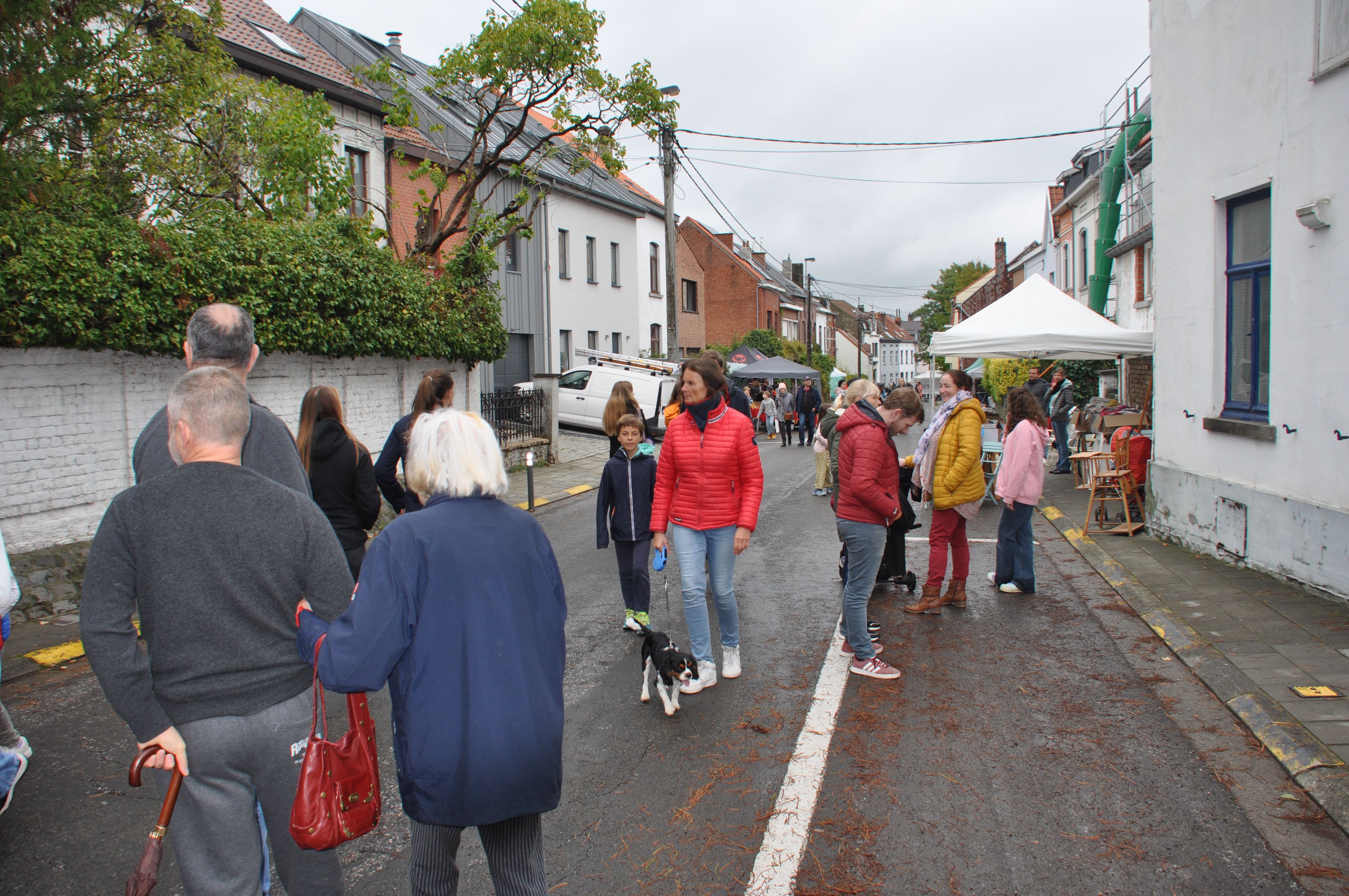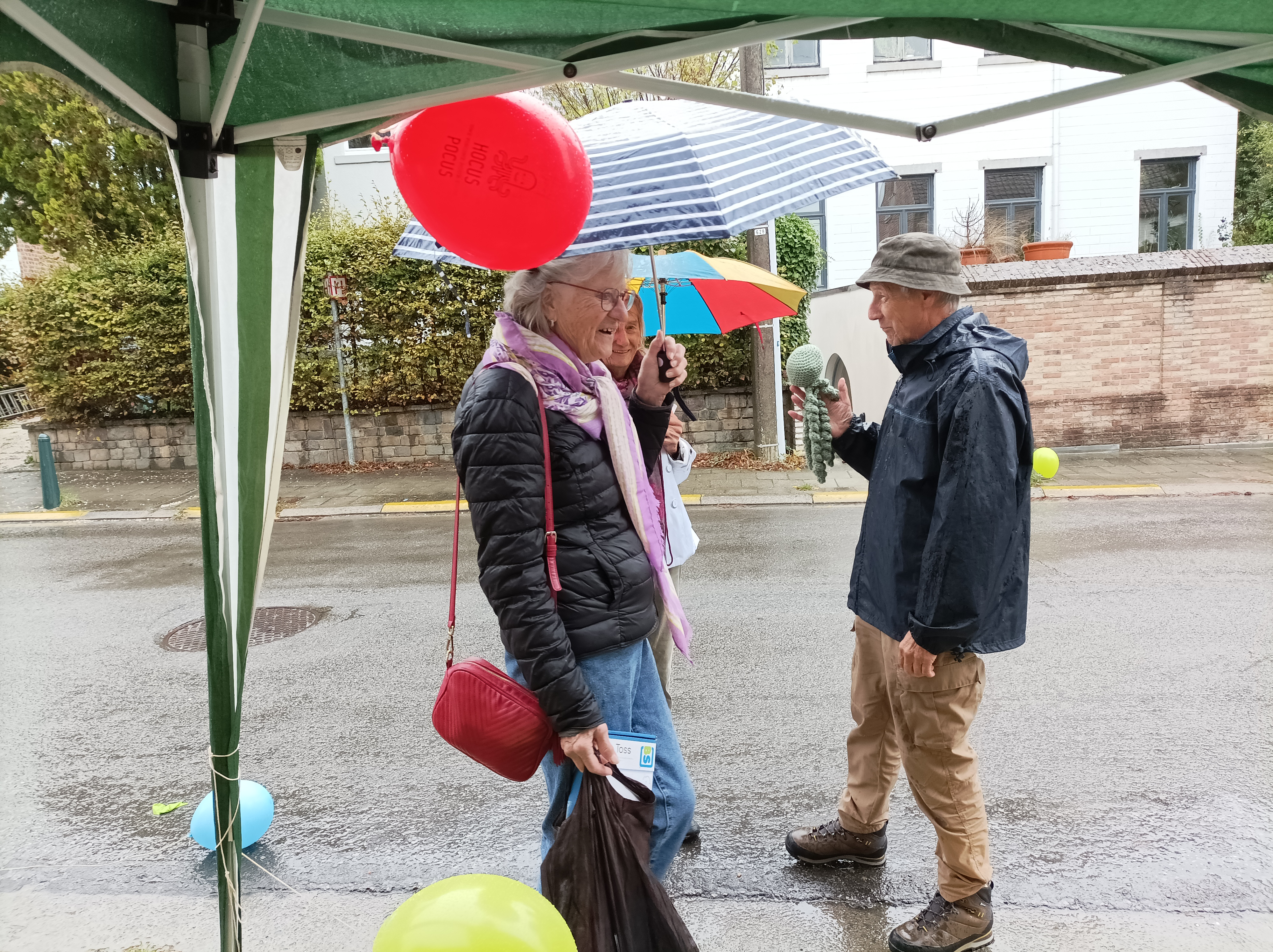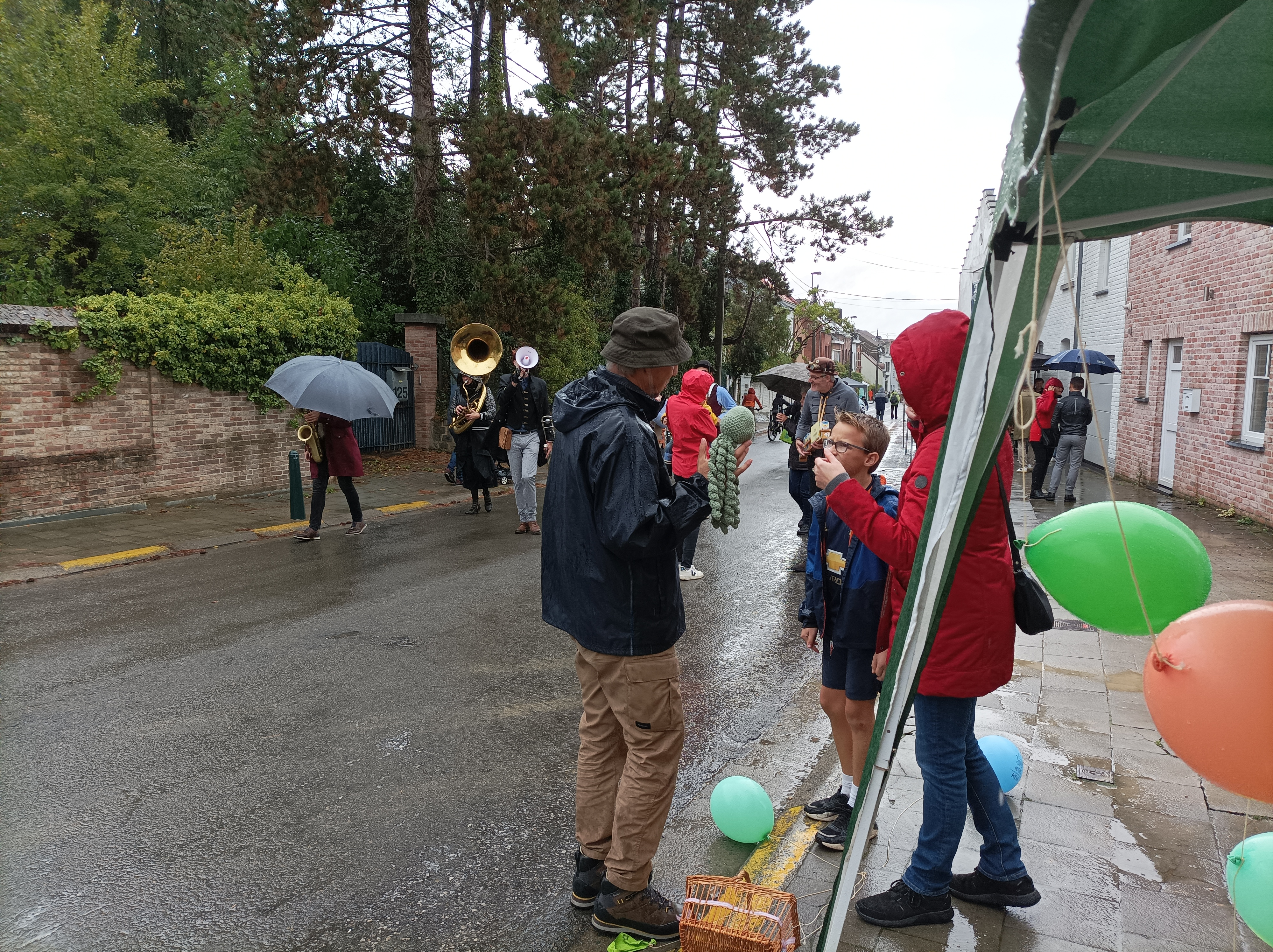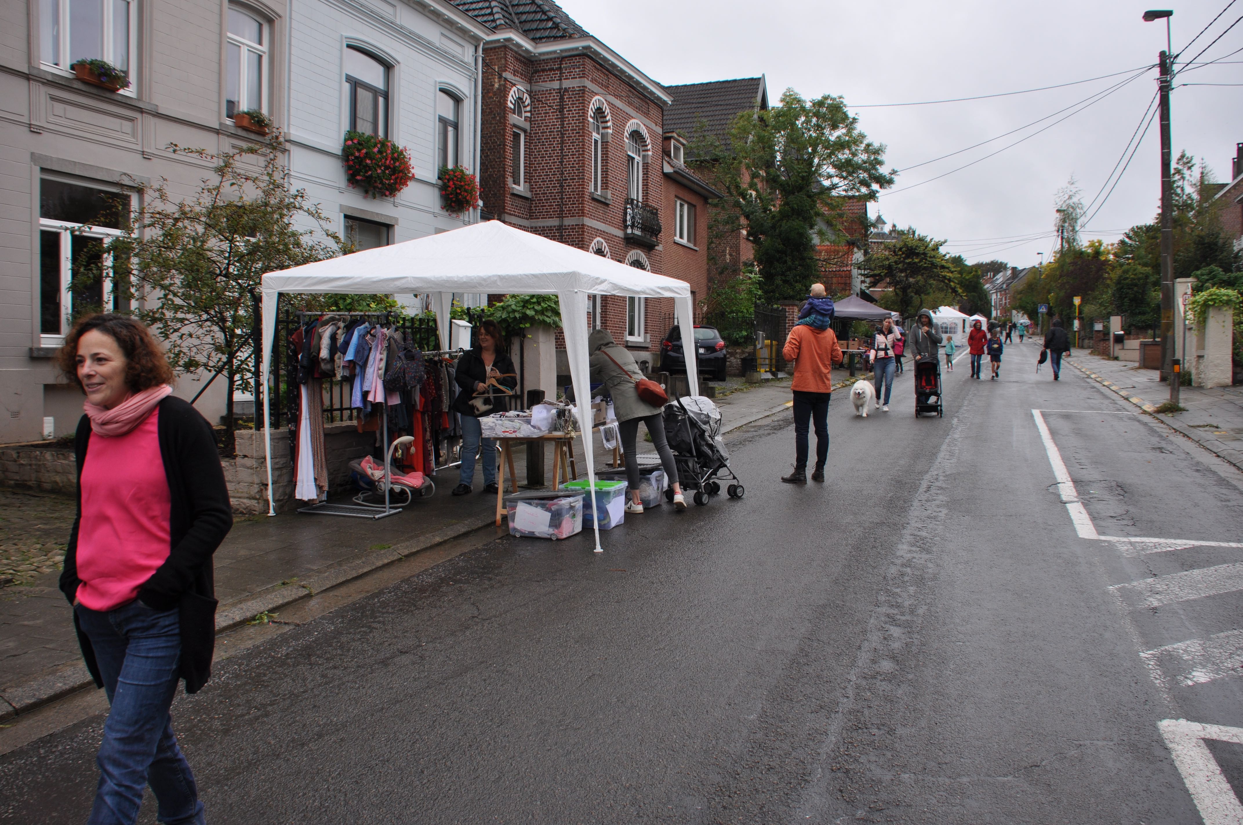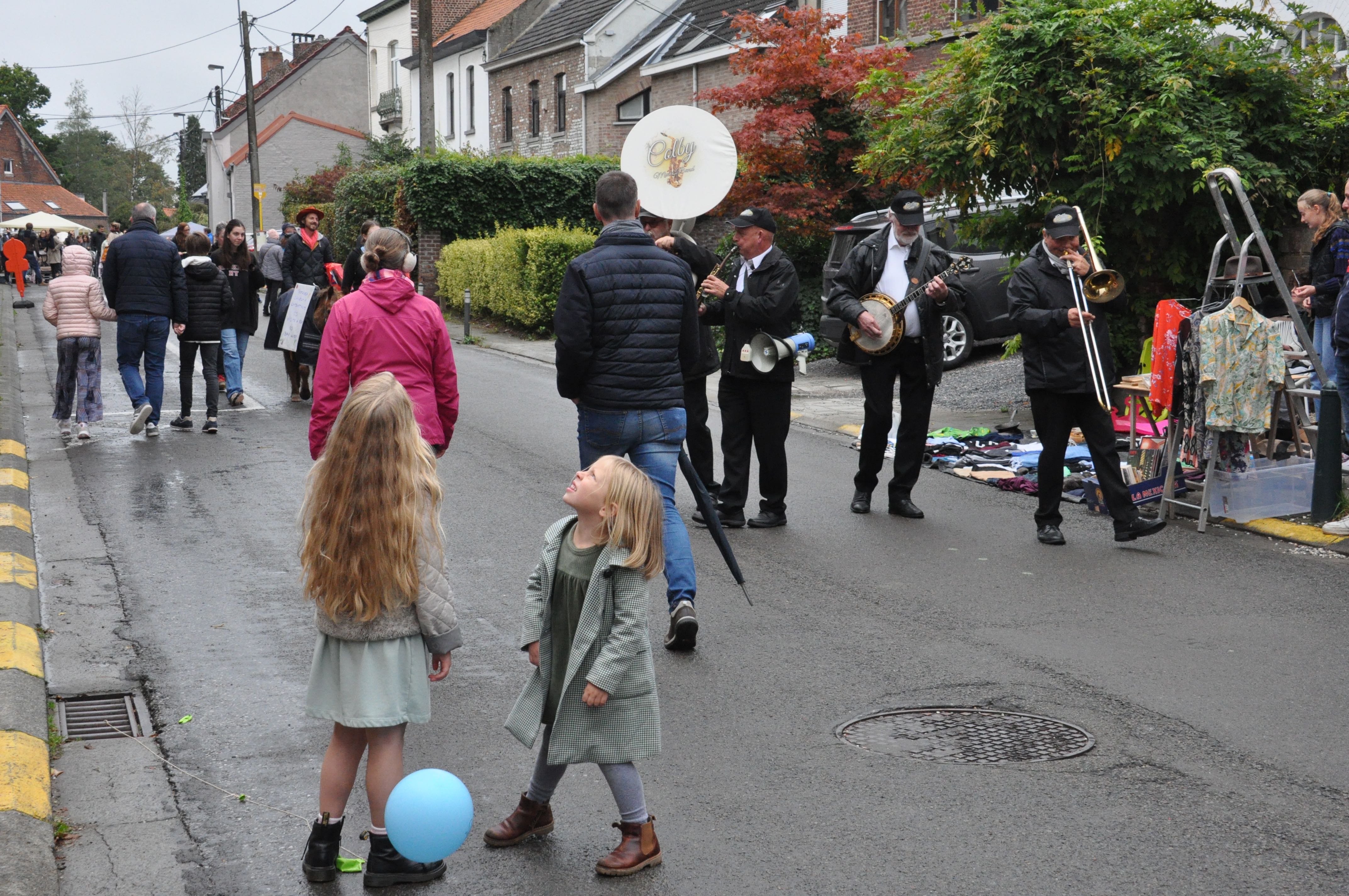 La Fête débute généralement à 9h. Ce dimanche 2 octobre, il fallait beaucoup d’imagination pour voir dans une rue lessivée par la pluie l’amorce de festivités. Les exposants les plus chanceux, ceux qui avaient une tente, ont bel et bien sorti leurs affaires pour la brocante. Les badauds étaient peu nombreux, capuchons et parapluies de rigueur.