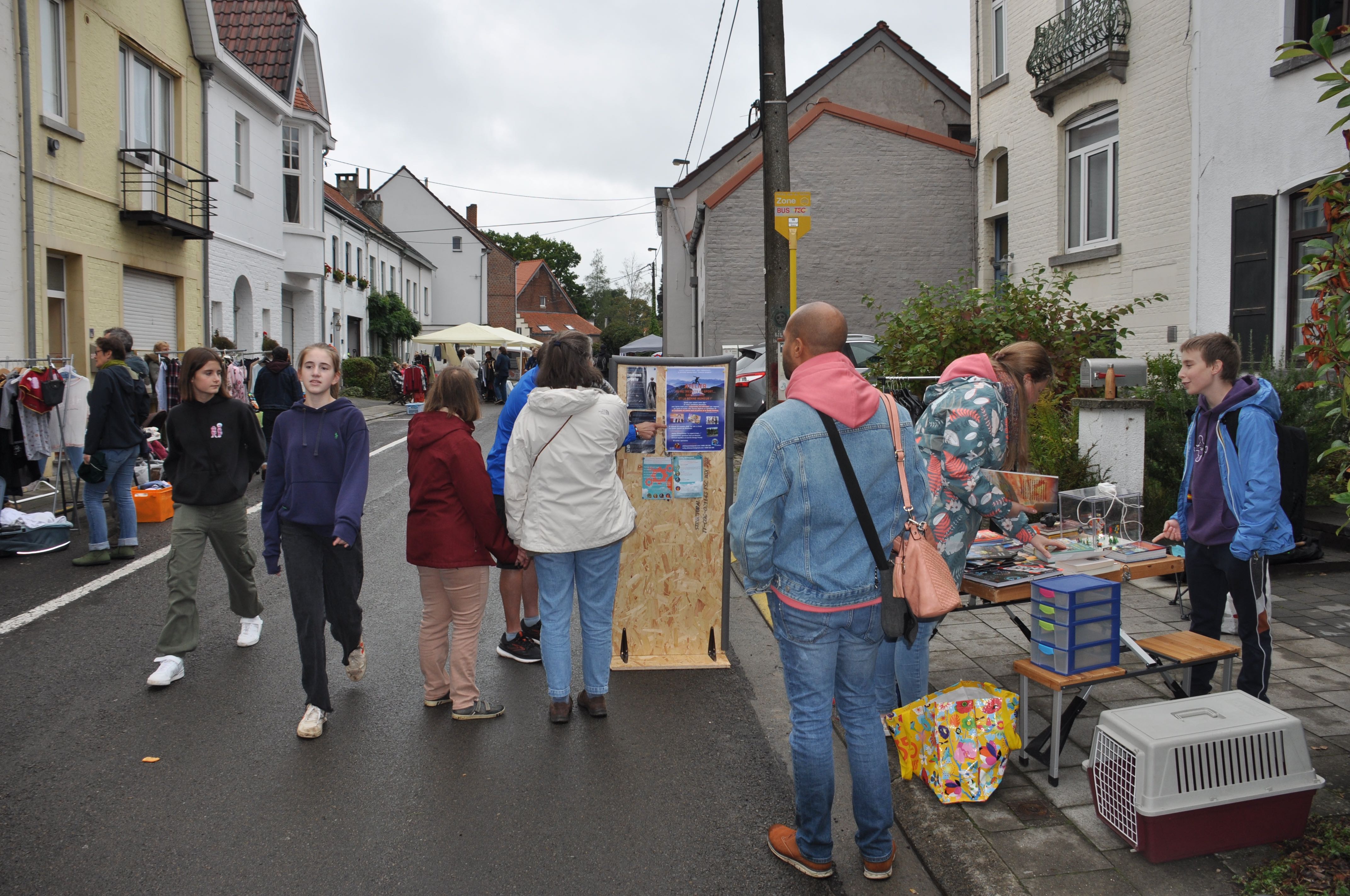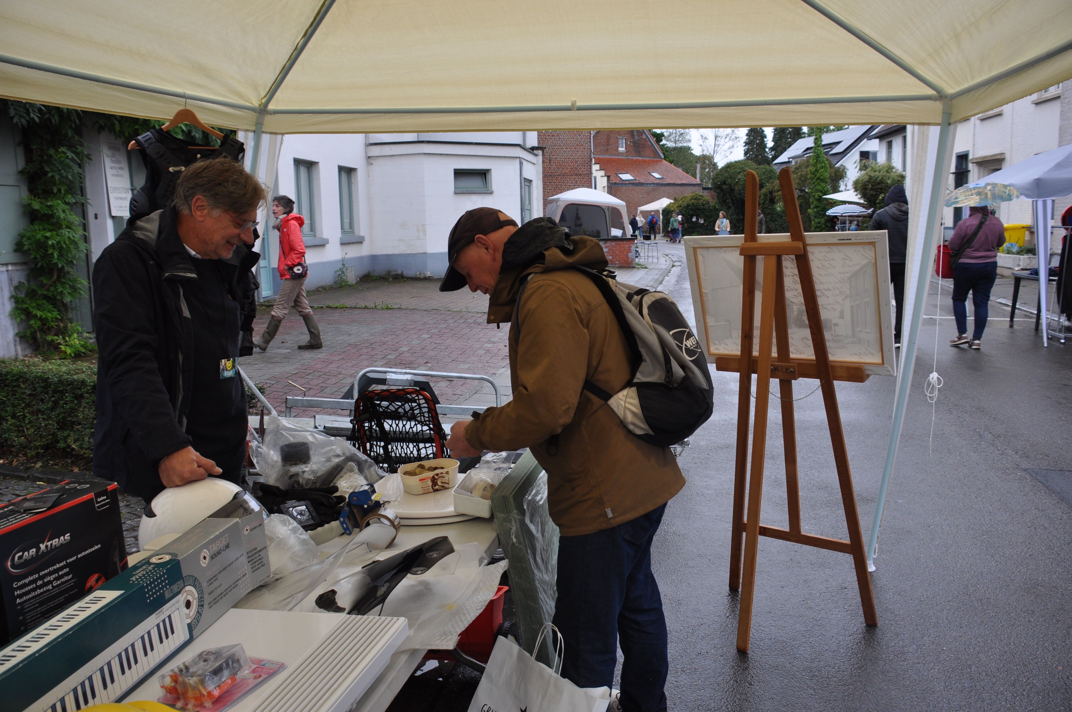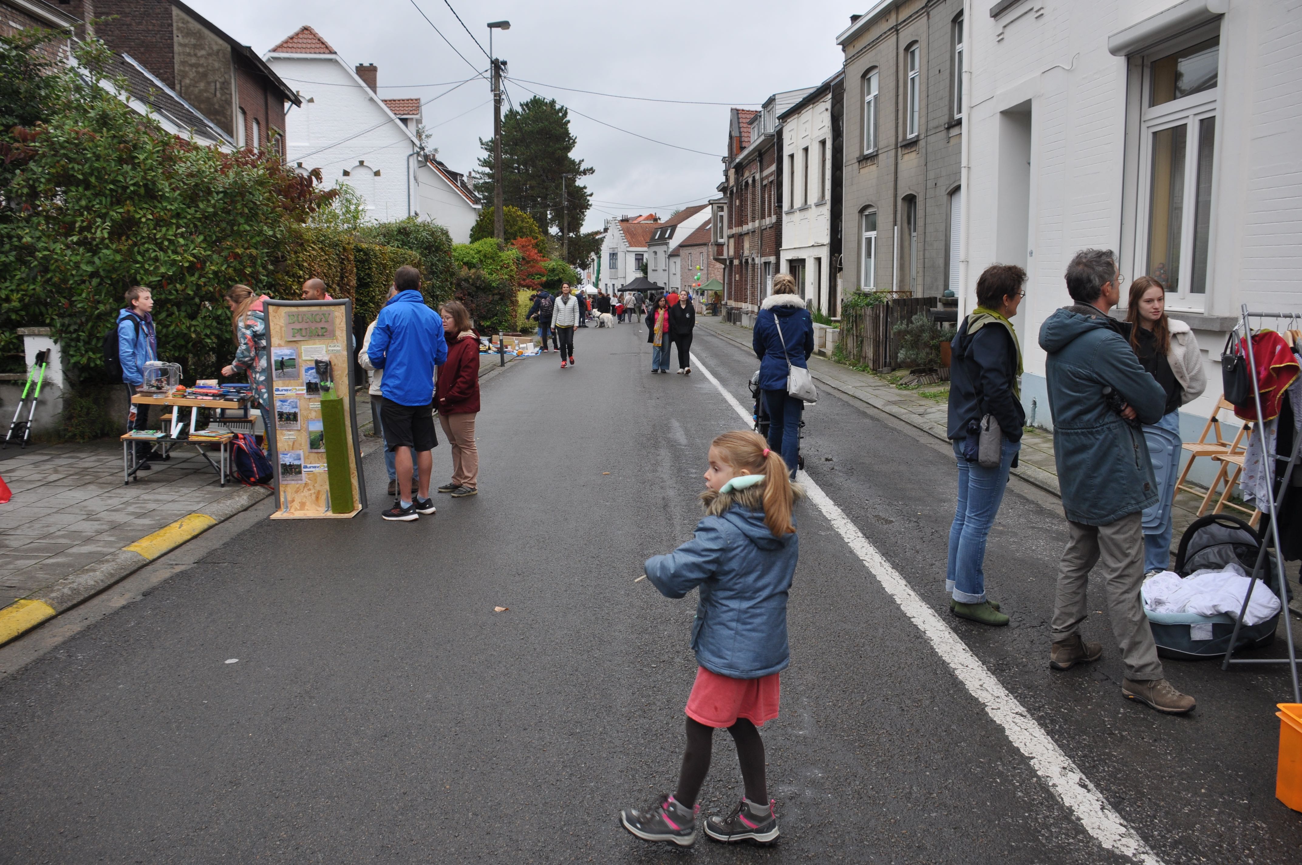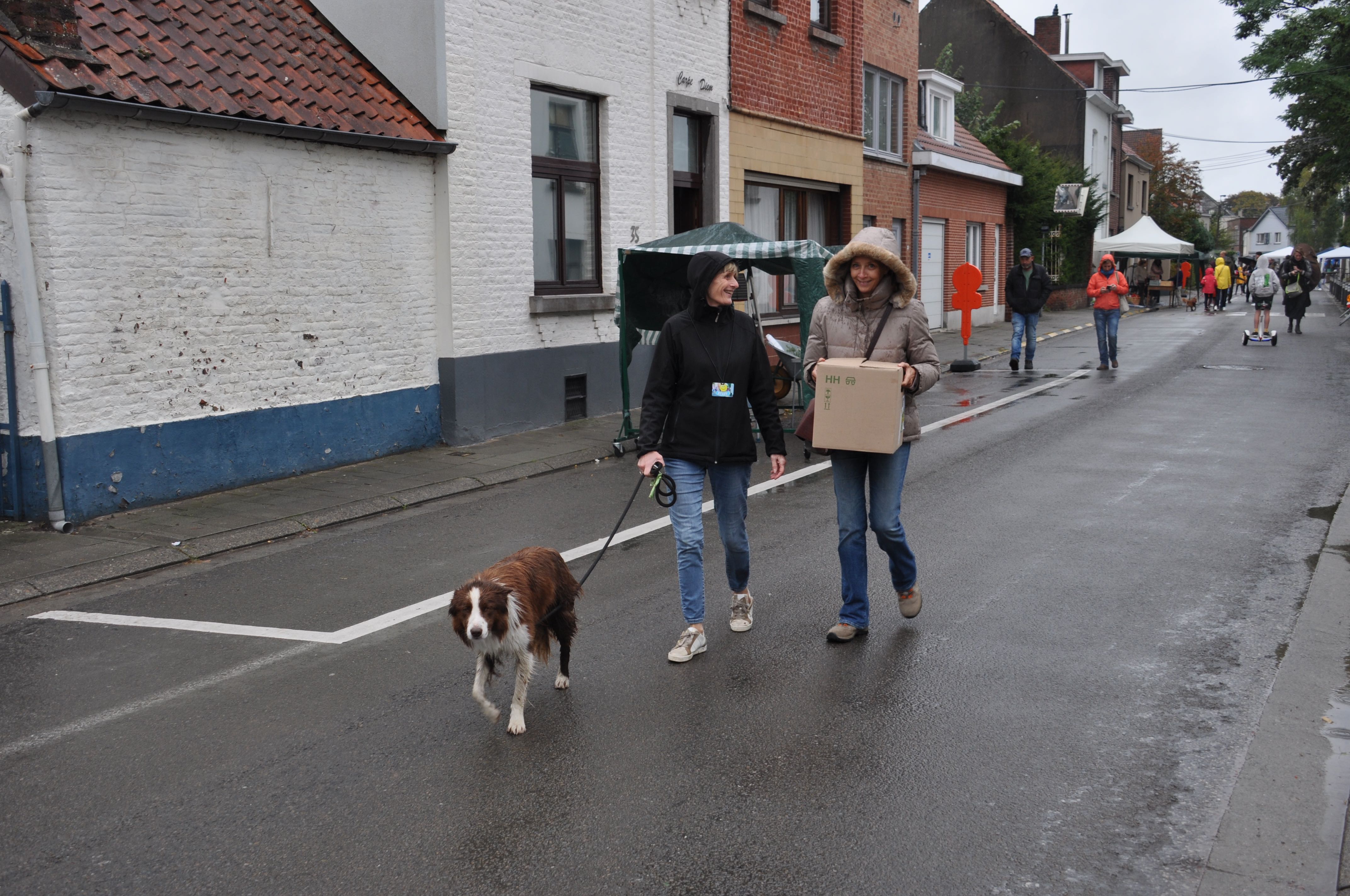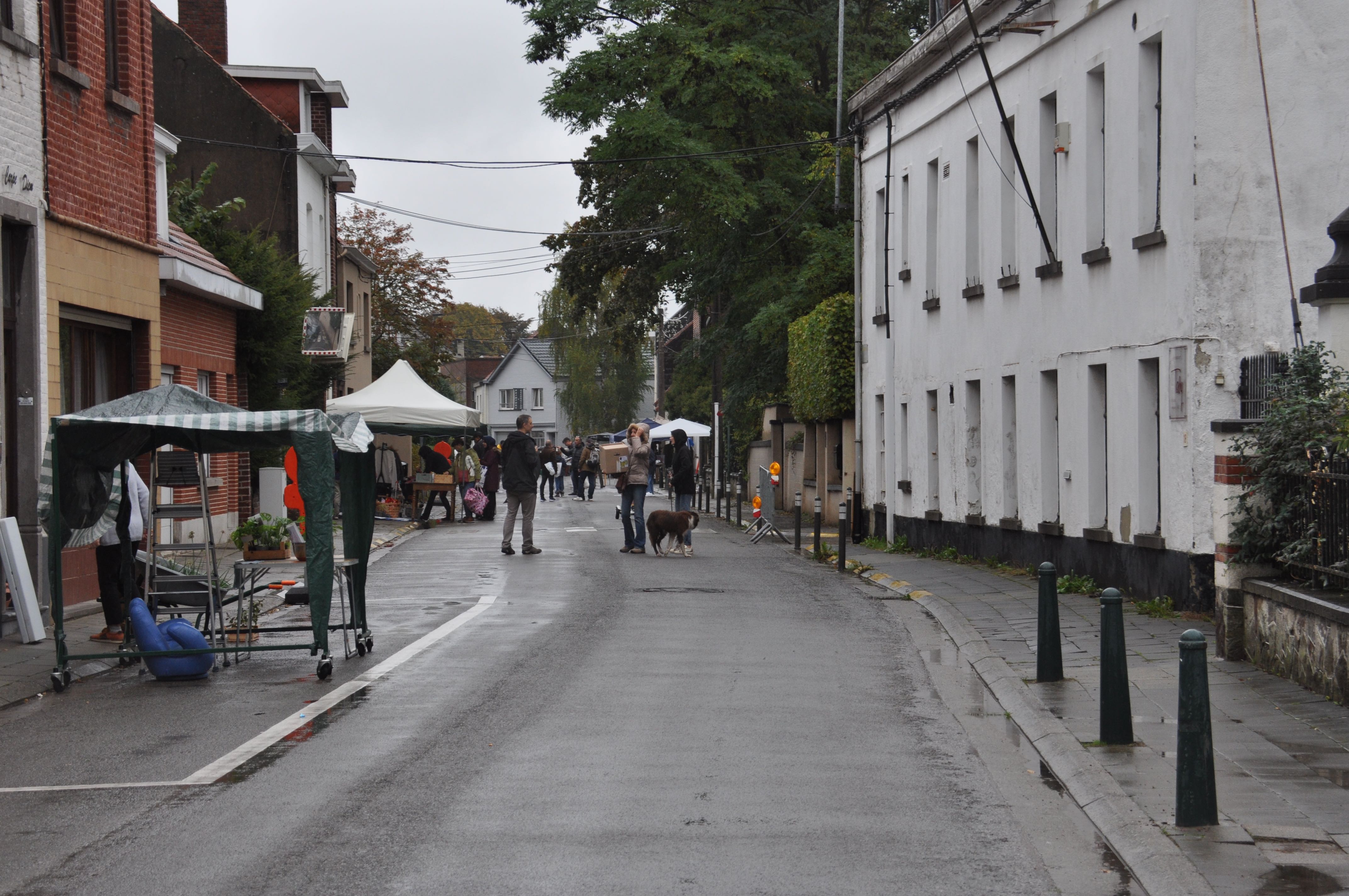 La Fête débute généralement à 9h. Ce dimanche 2 octobre, il fallait beaucoup d’imagination pour voir dans une rue lessivée par la pluie l’amorce de festivités. Les exposants les plus chanceux, ceux qui avaient une tente, ont bel et bien sorti leurs affaires pour la brocante. Les badauds étaient peu nombreux, capuchons et parapluies de rigueur.