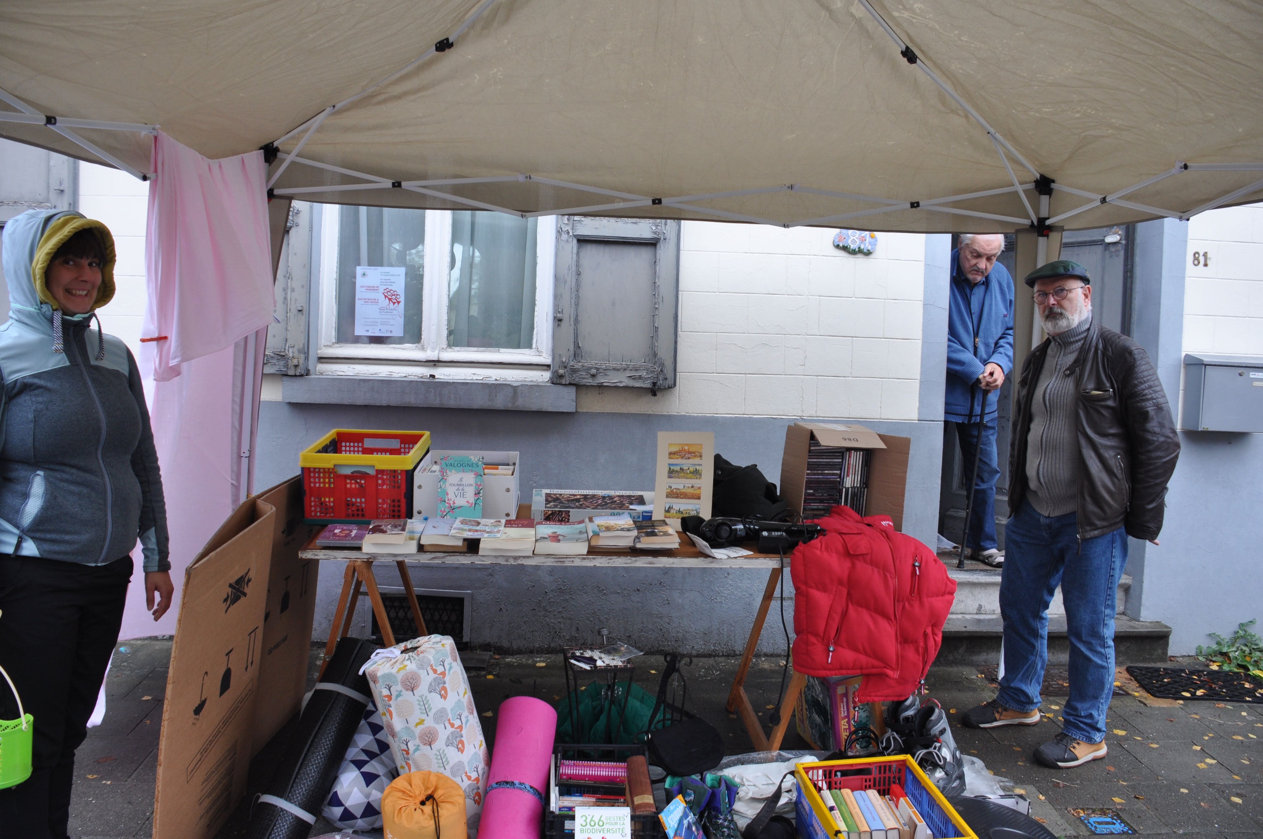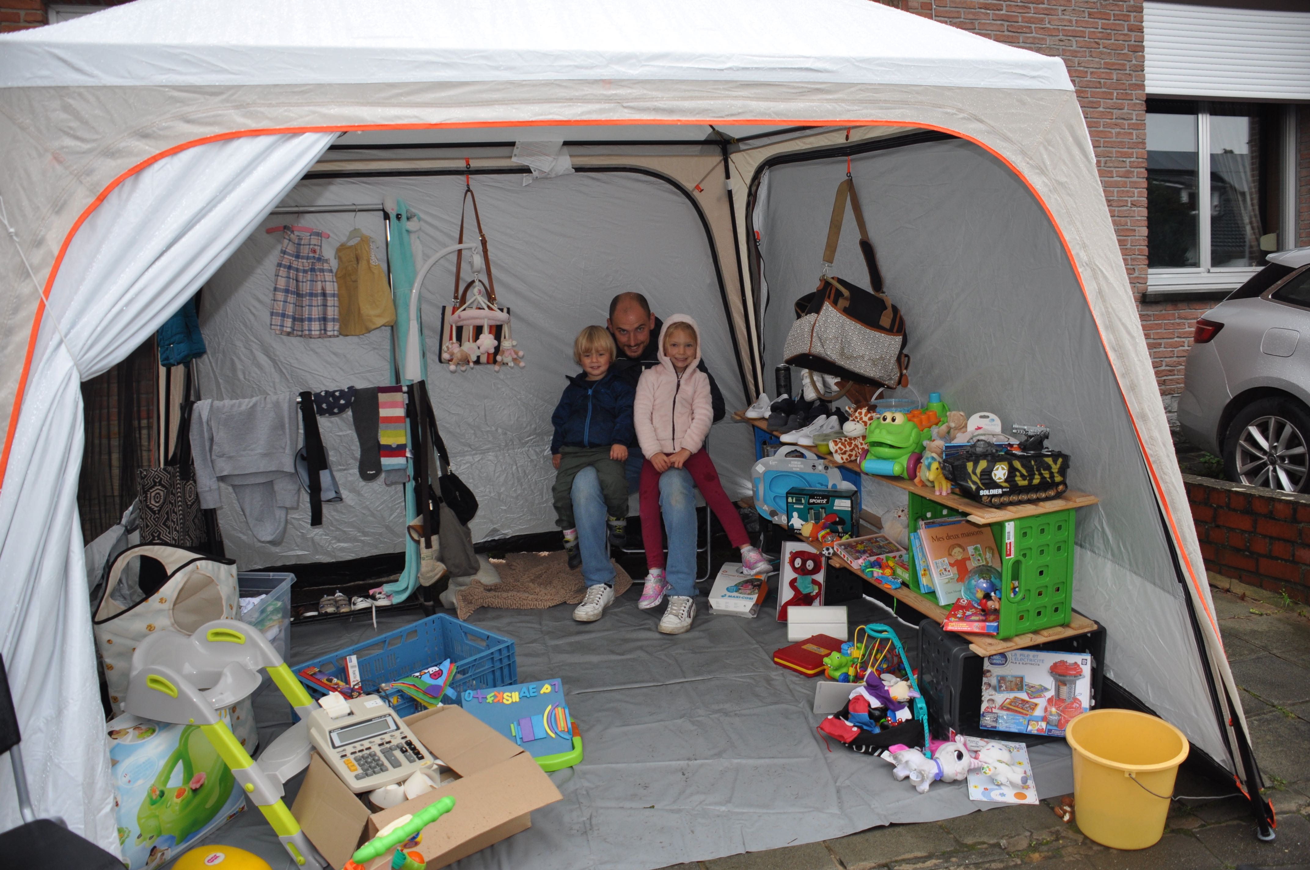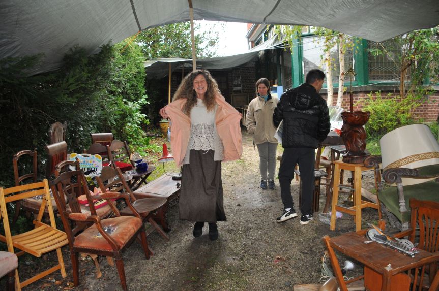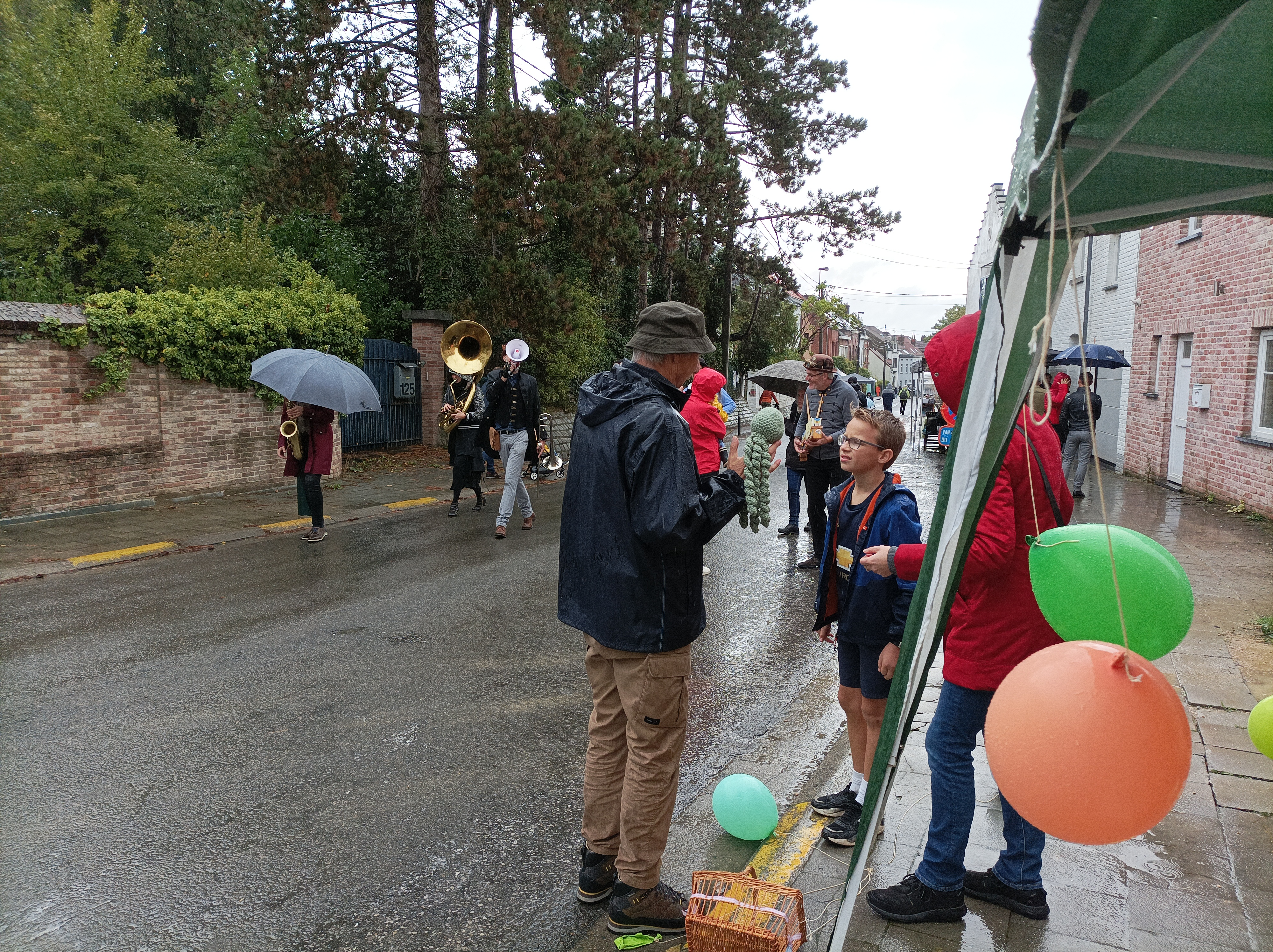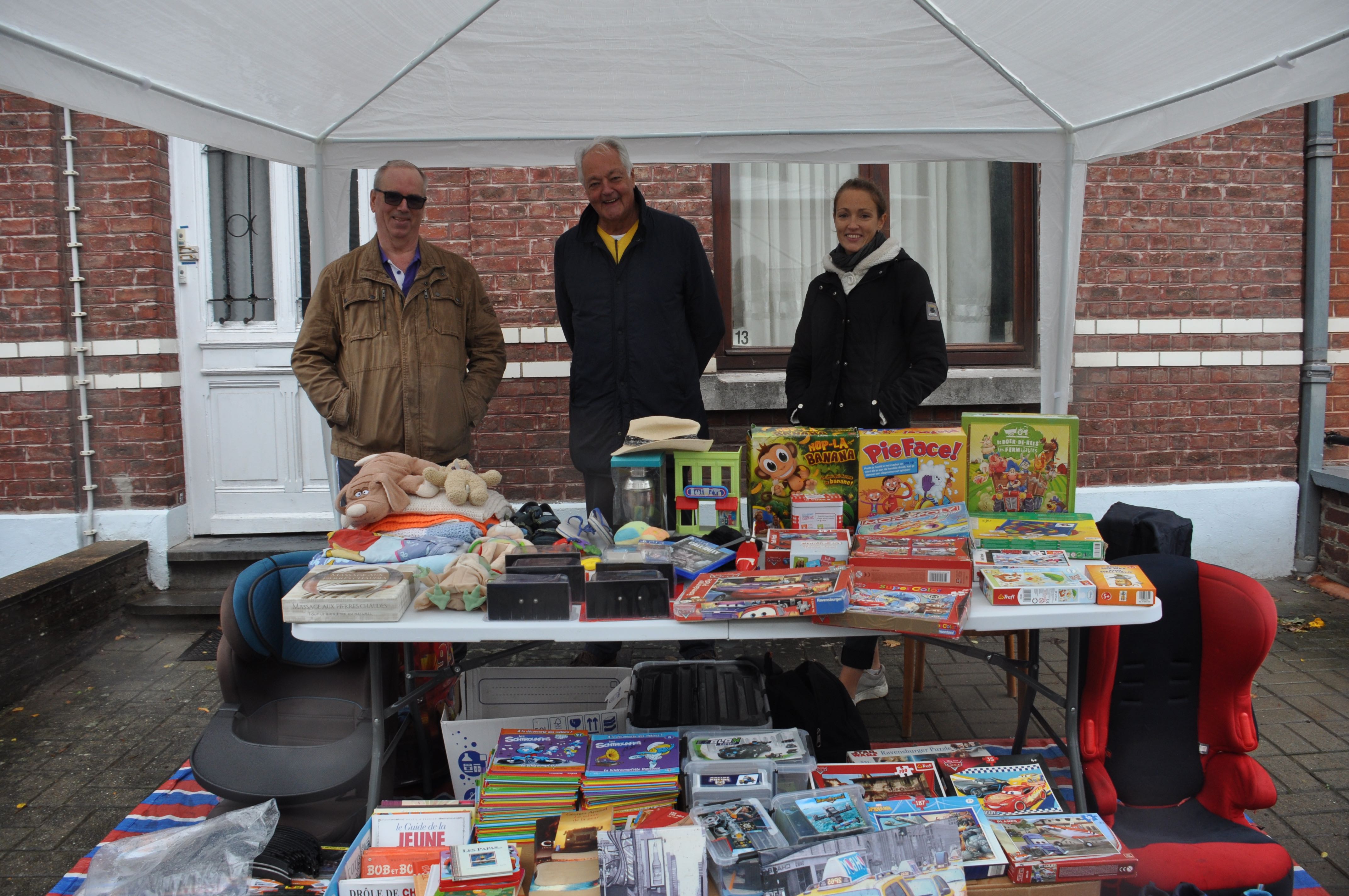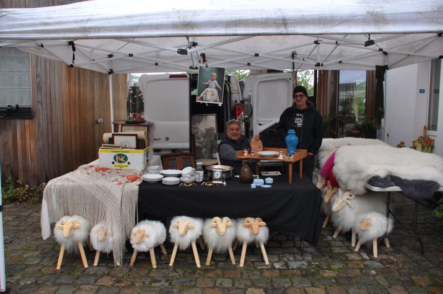 La Fête débute généralement à 9h. Ce dimanche 2 octobre, il fallait beaucoup d’imagination pour voir dans une rue lessivée par la pluie l’amorce de festivités. Les exposants les plus chanceux, ceux qui avaient une tente, ont bel et bien sorti leurs affaires pour la brocante. Les badauds étaient peu nombreux, capuchons et parapluies de rigueur.
