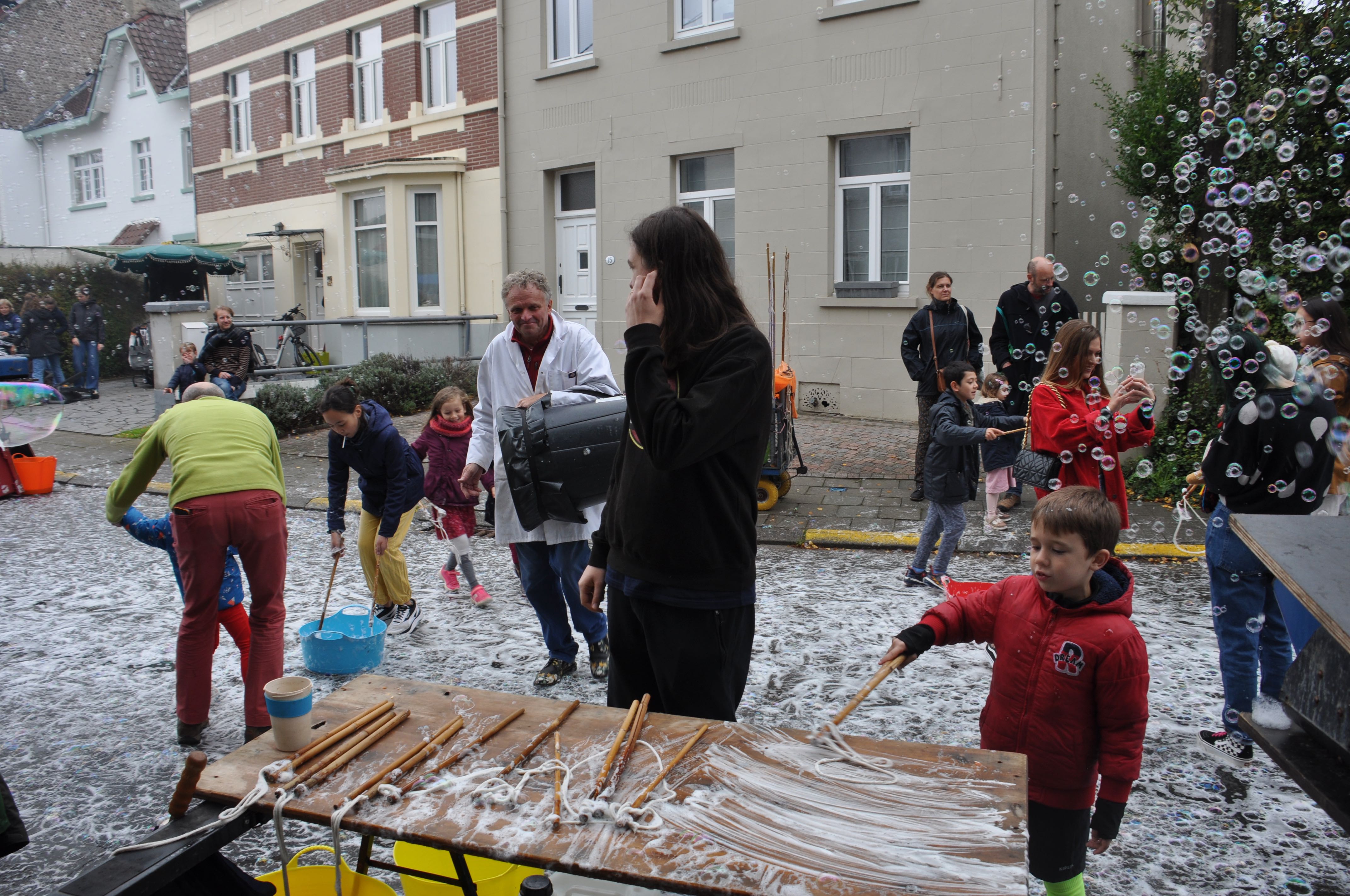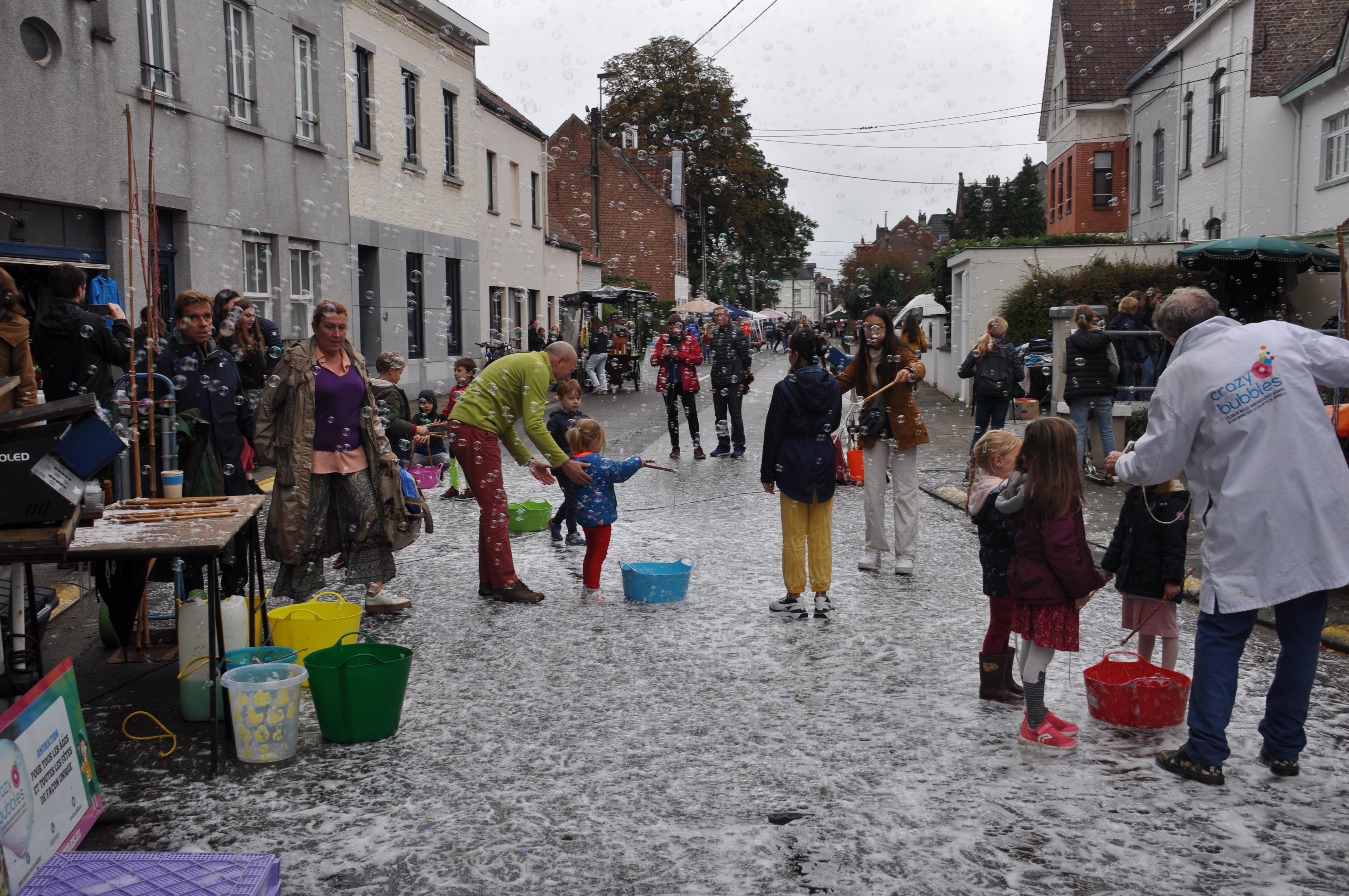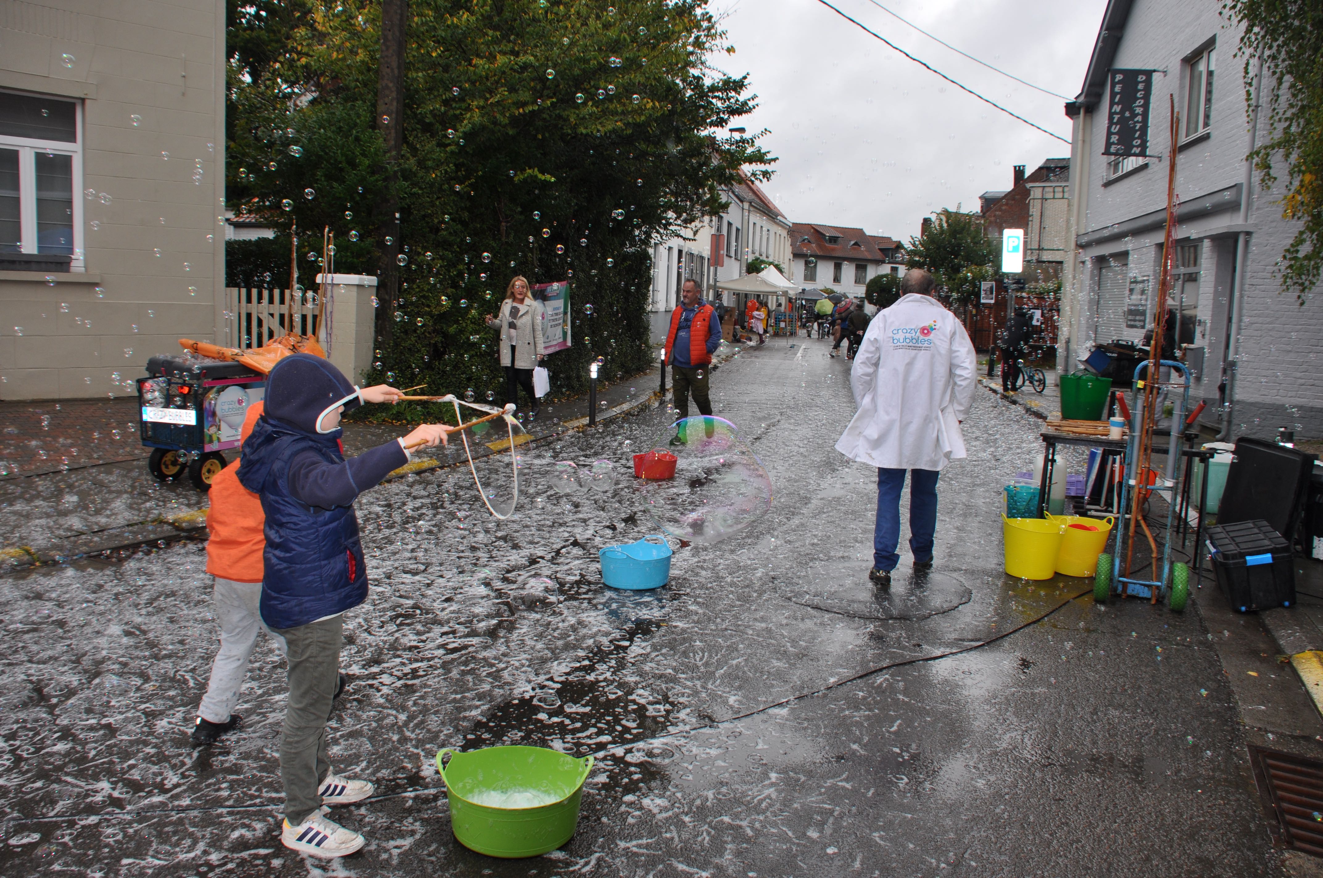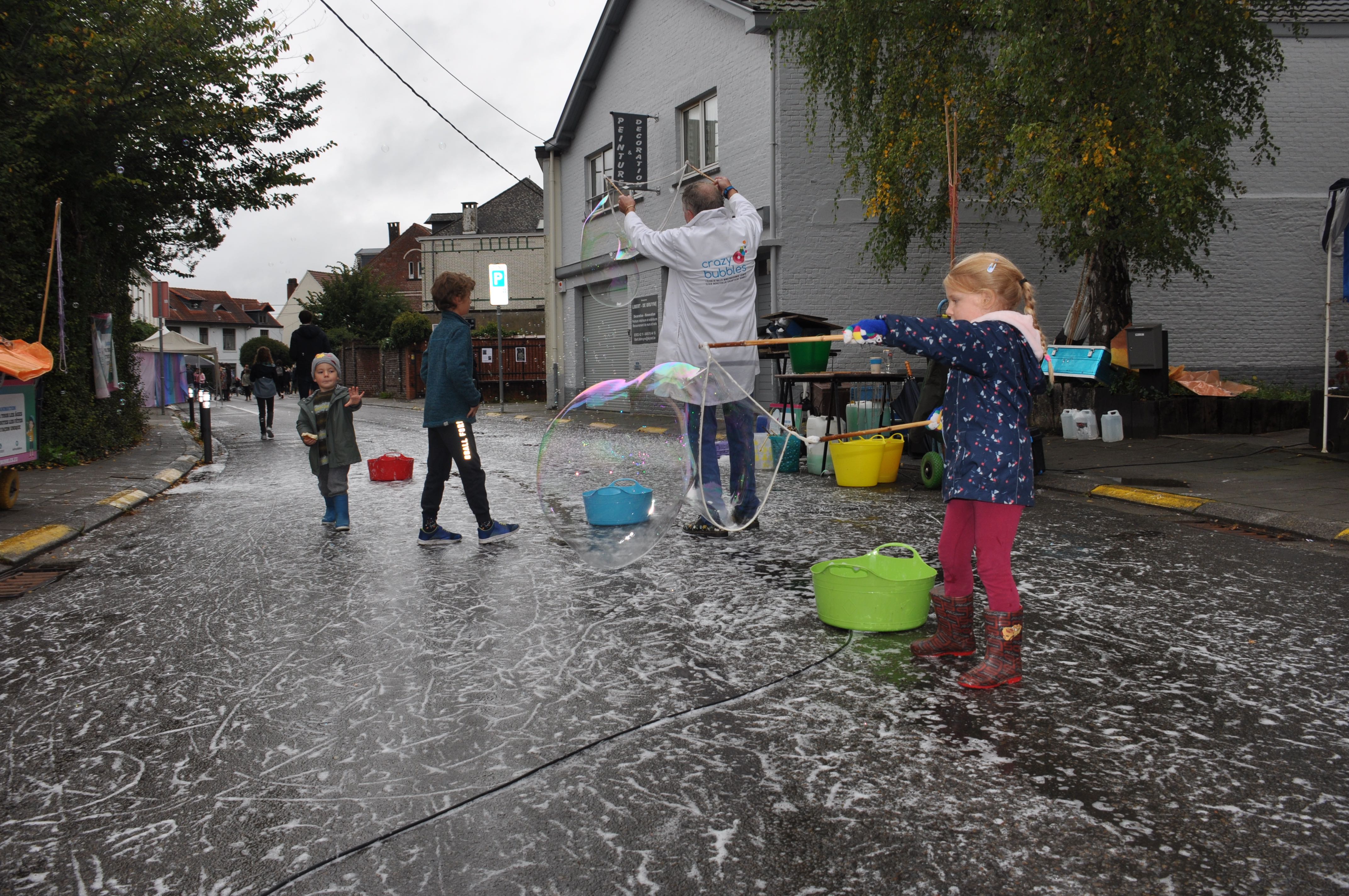 Les enfants ont fort apprécié Sylvain, le magicien, devenu un habitué de l’événement. Sa grâce, son humour et bien sûr ses tours de magie séduisent petits et grands. Les bulles géantes de Patrick ont, elles aussi, attiré nombre d’enfants. Quand il pleuvait abondamment, cela faisait comme un matelas de neige sur la chaussée. Et on a vu d’énormes bulles s’élever parfois jusqu’au toit des maisons. Avec les jeux géants, le circuit de billes ou encore l’animation sur les micro-habitants de l’avenue des Combattants, il y avait de quoi s’amuser.