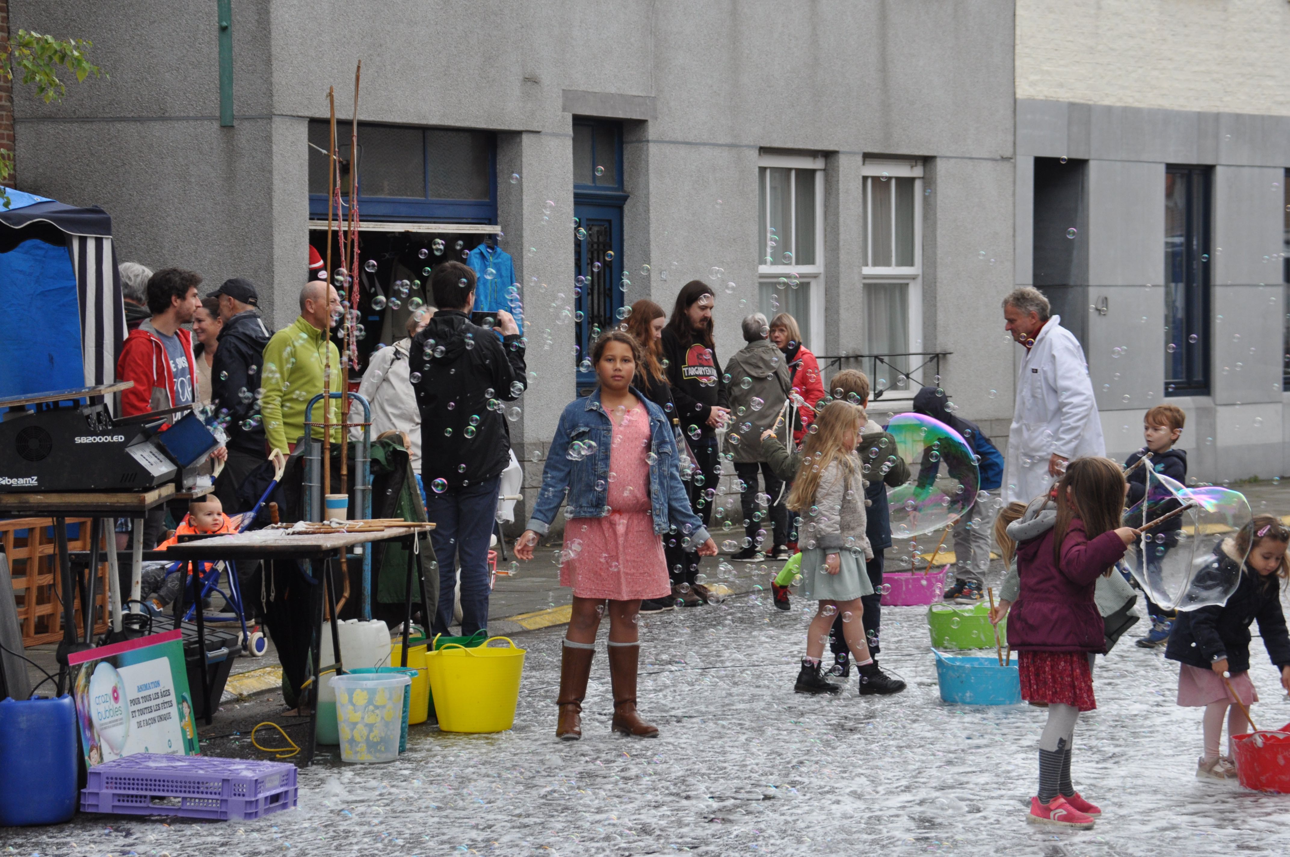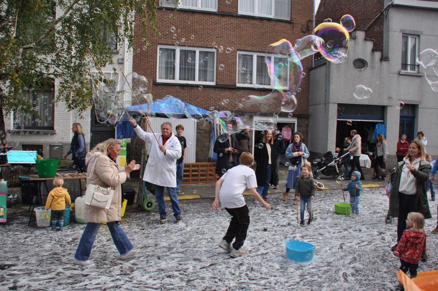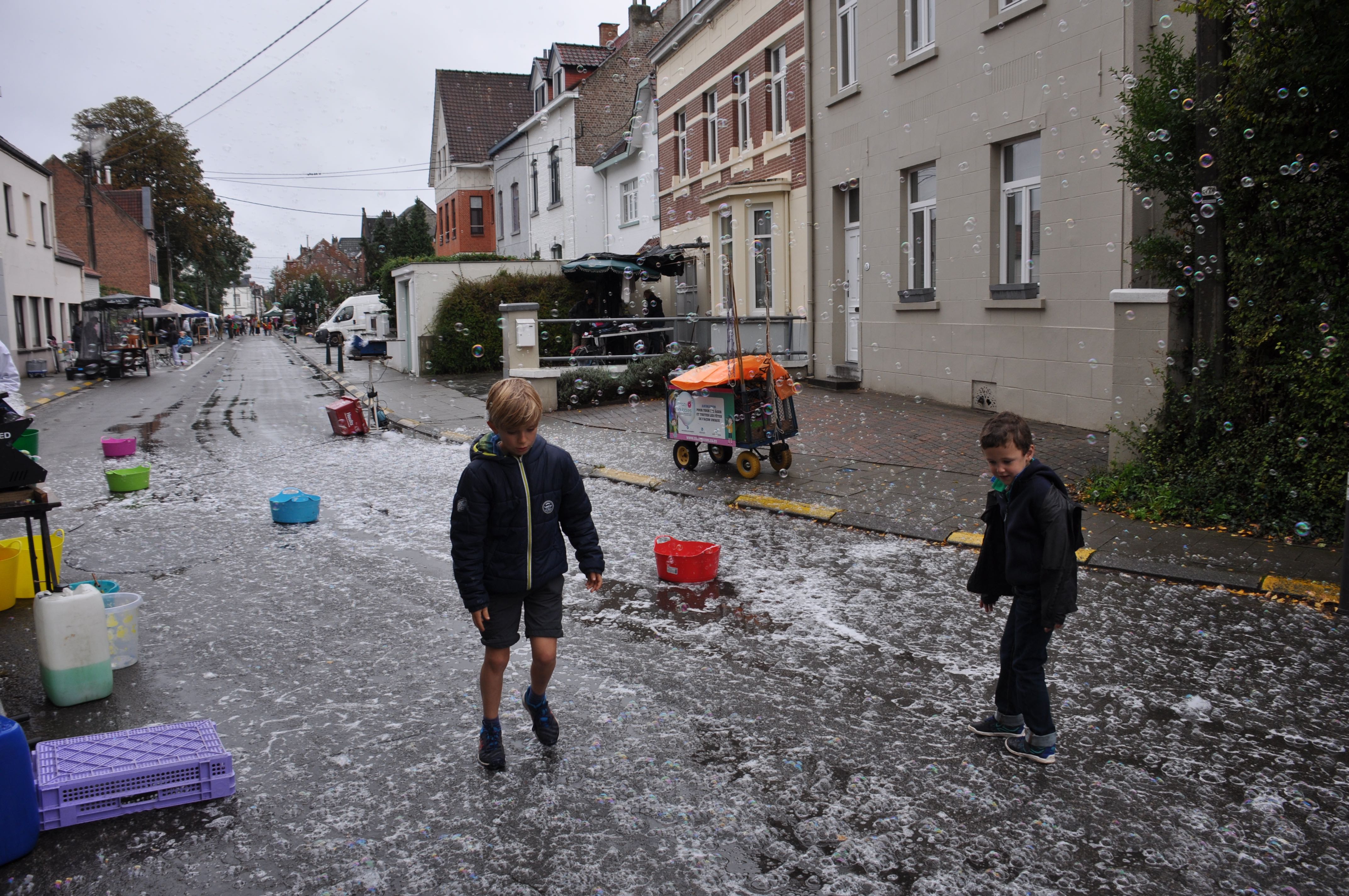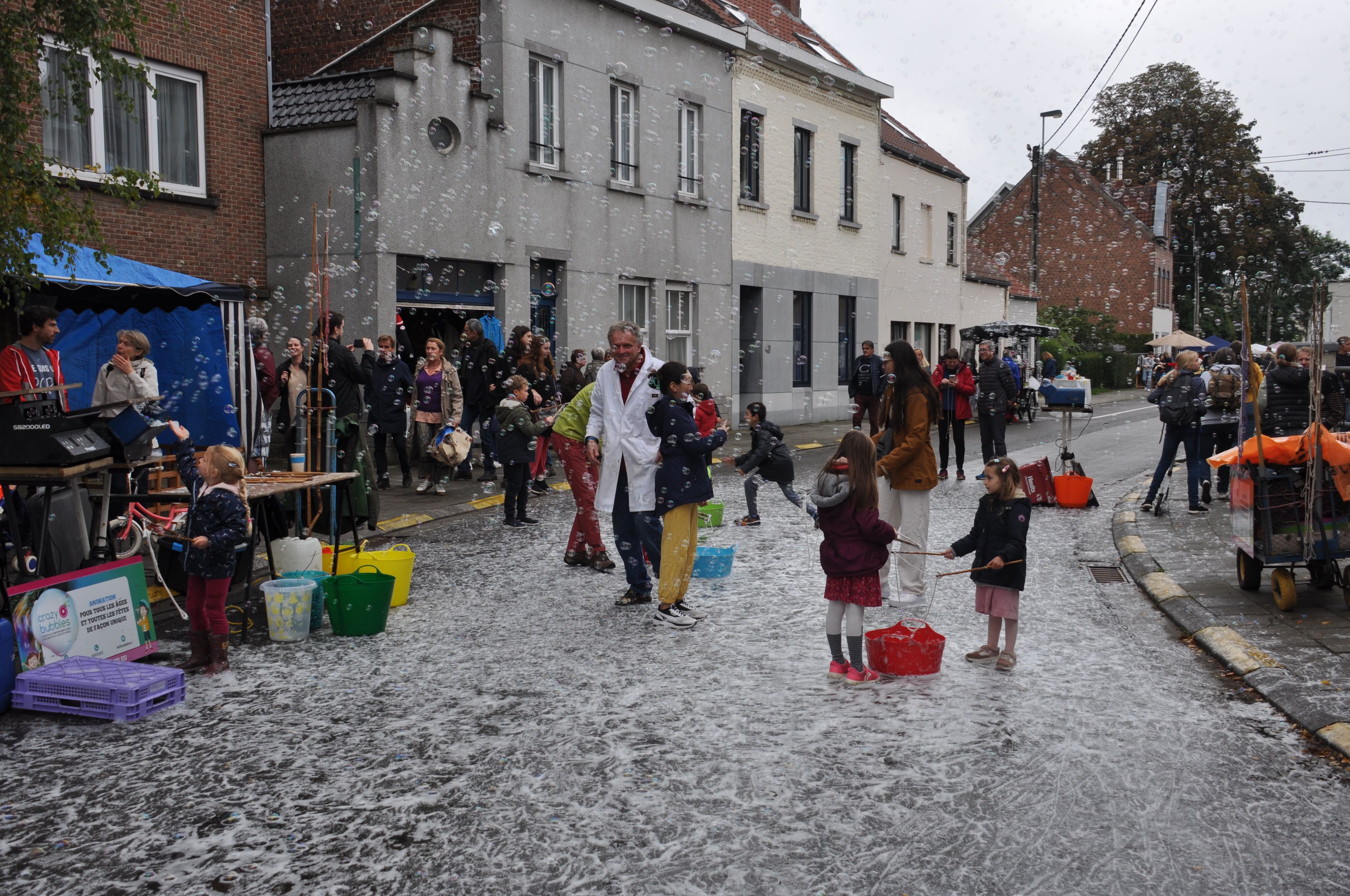 Les enfants ont fort apprécié Sylvain, le magicien, devenu un habitué de l’événement. Sa grâce, son humour et bien sûr ses tours de magie séduisent petits et grands. Les bulles géantes de Patrick ont, elles aussi, attiré nombre d’enfants. Quand il pleuvait abondamment, cela faisait comme un matelas de neige sur la chaussée. Et on a vu d’énormes bulles s’élever parfois jusqu’au toit des maisons. Avec les jeux géants, le circuit de billes ou encore l’animation sur les micro-habitants de l’avenue des Combattants, il y avait de quoi s’amuser.