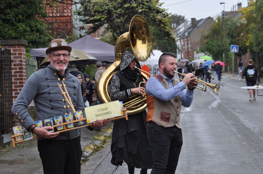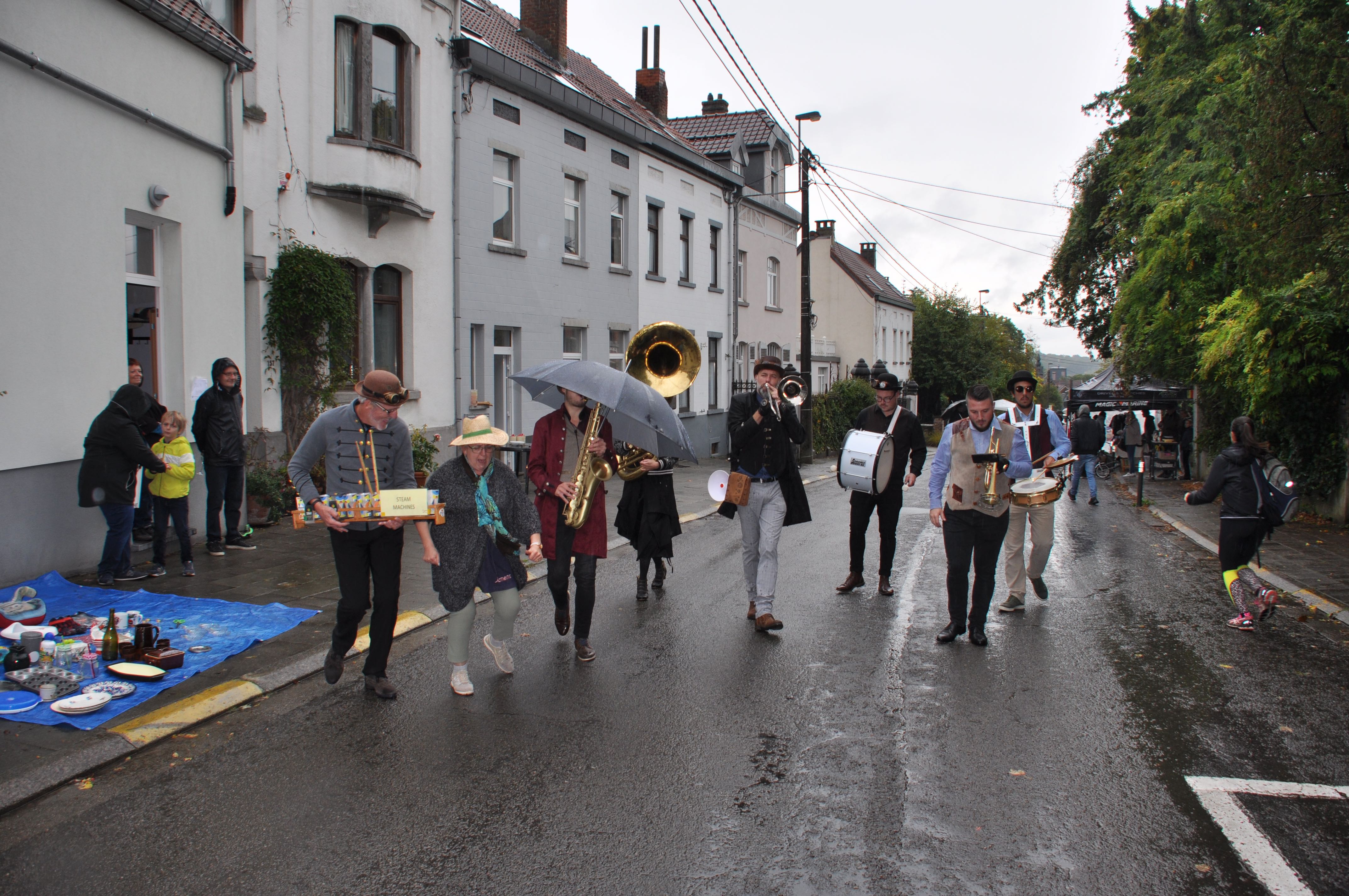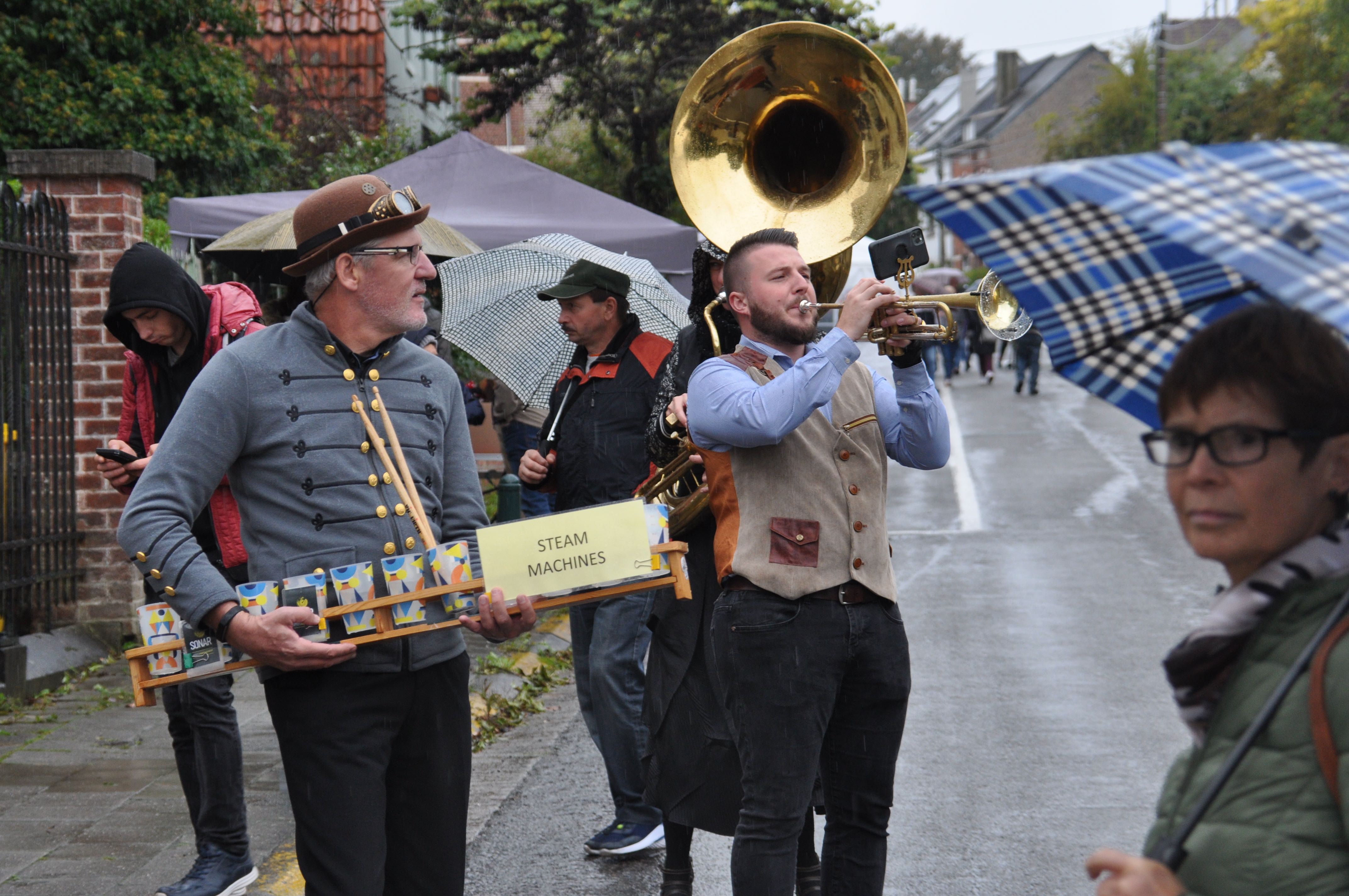 Les cuivres ont effectivement chassé les nuages: Steam Machines a terminé sa prestation au sec, avant de céder la rue à Oktaba Paradise Band. Après la pluie, les stands ont fleuri un peu partout et les badauds ont afflué, de plus en plus nombreux au fil de l’après-midi, pour profiter de la brocante, des bars clandestins et des nombreuses animations.