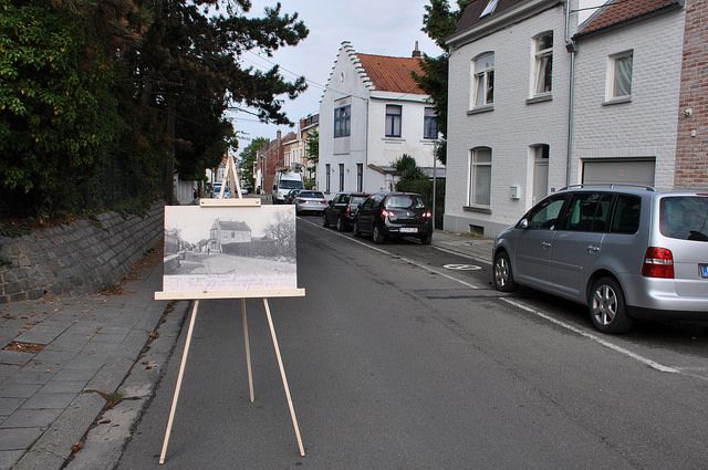 Des chevalets là où les photos ont été prises, un siècle plus tôt
