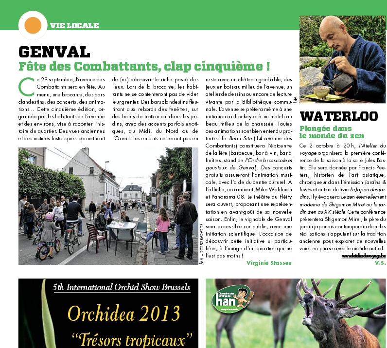L’Avenir de ce lundi consacre une belle page à la Fête des Combattants et du vignoble 2015, avec un reportage joliment illustré. « La 10e édition de la Fête des Combattants, à Genval, s’est déroulée dans la bonne humeur. De nombreuses activités étaient proposées pour tous », écrit la journaliste, Gaëlle Colinet.